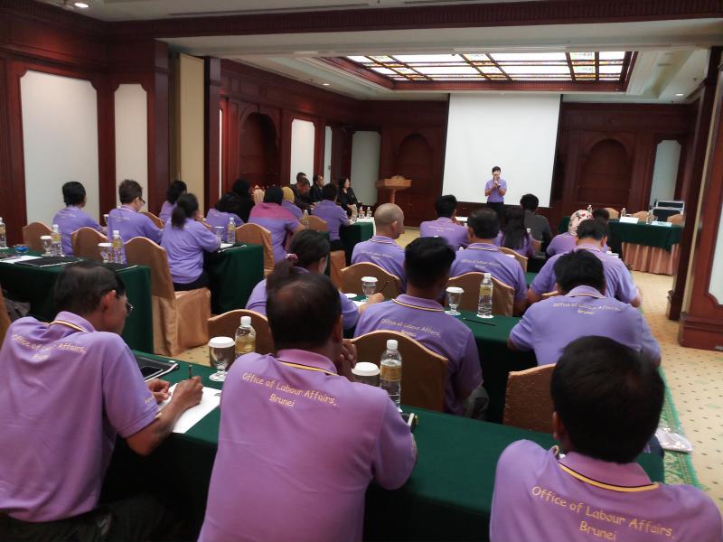 เมื่อวันที่ 10 สิงหาคม 2561 สำนักงานแรงงานในประเทศบรูไน ได้จัดการประชุมอาสาสมัครแรงงานในประเทศบรูไน ณ Meeting Room 4, The Rizqun International Hotel โดยมีอาสาสมัครแรงงานไทยในประเทศบรูไน เข้าร่วมประชุม 40 คน ทั้งนี้ การจัดประชุมดังกล่าวเป็นส่วนหนึ่งของโครงการ “ส่งเสริม พัฒนา ศักยภาพอาสาสมัครแรงงานไทย” ของ สนร.บรูไน โดยมีวัตถุประสงค์เพื่อส่งเสริมให้อาสาสมัครแรงงาน ได้มีความรู้ มีทักษะด้านแรงงานเพิ่มขึ้นและเพื่อพัฒนาศักยภาพของอาสาสมัครแรงงาน ให้สามารถช่วยเหลือแรงงานไทยที่ประสบปัญหาความเดือดร้อนได้อย่างมีประสิทธิภาพ ในการประชุม สนร.บรูไน ได้เชิญวิทยากรจากกรมแรงงาน บรูไน มาบรรยายให้ความรู้แก่อาสาสมัครแรงงาน เรื่อง กฎหมายแรงงานบรูไนและแนวปฏิบัติการขออนุญาตจ้างแรงงานต่างชาติ และได้จัดพิธีมอบใบประกาศเกียรติคุณ โล่ประกาศเกียรติคุณ และเข็มเชิดชูเกียรติ ให้แก่นางสาวรัตน์ธิดา อินทรธิราช ซึ่งได้รับการคัดเลือกให้เป็นอาสาสมัครแรงงานดีเด่น ประจำปีงบประมาณ 2560