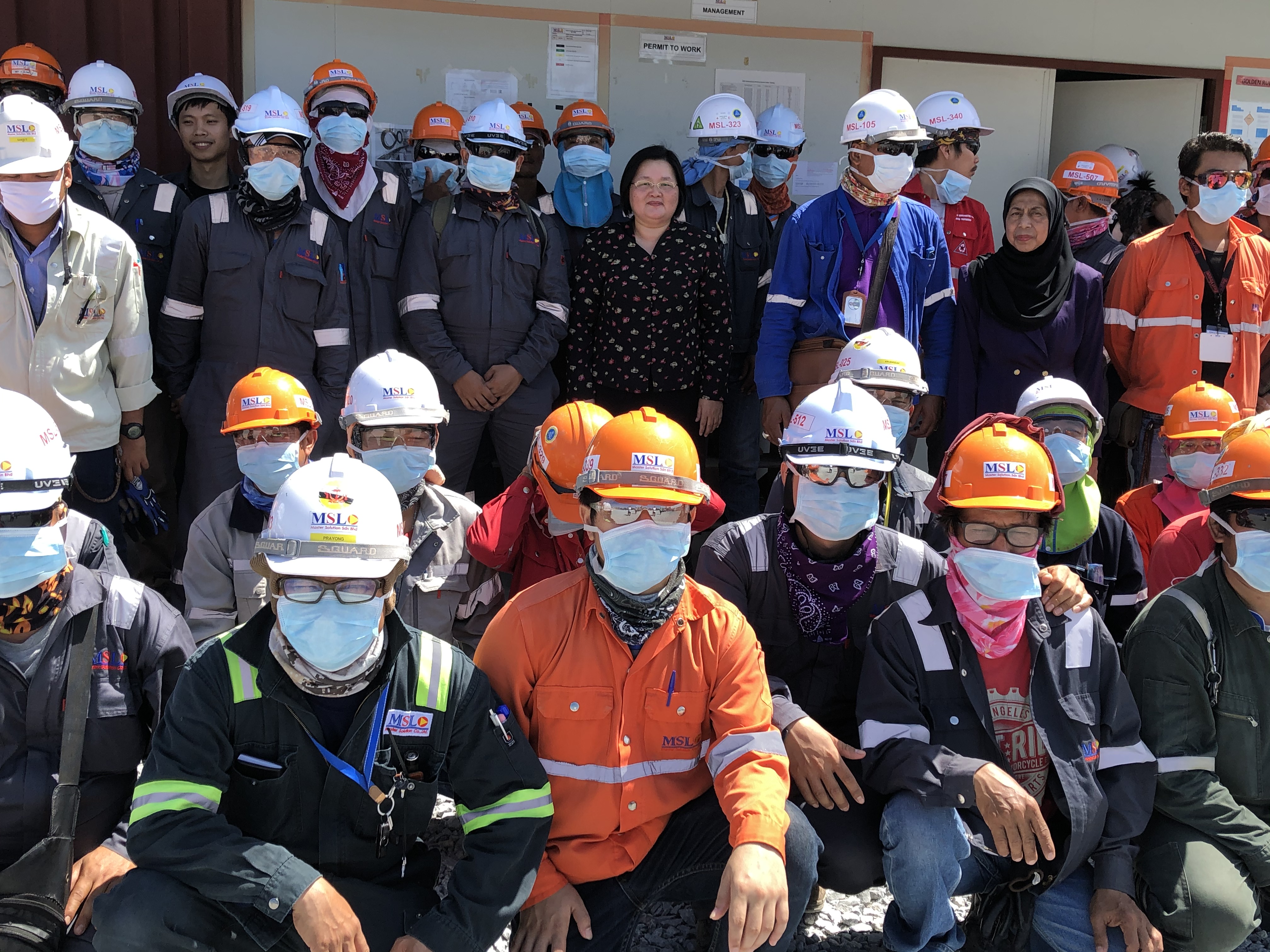 เมื่อวันที่ 5 กุมภาพันธ์ 2563 นางนภวรรณ โกละกะ อัครราชทูตที่ปรึกษา (ฝ่ายแรงงาน) พร้อมด้วยเจ้าหน้าที่สำนักงานแรงงานในประเทศบรูไน ได้เดินทางไปยังเมือง Seria ซึ่งมีเขตอุตสาหกรรมที่อยู่ห่างจากเมืองหลวงประมาณ 80 กิโลเมตร เพื่อตรวจเยี่ยมแรงงานไทยในบริษัท MSL (Master Solution Sdn Bhd) ผู้ประกอบธุรกิจรับติดตั้งระบบไฟฟ้าอุตสาหกรรมและไฟฟ้าโรงงาน ซึ่งได้รับงานติดตั้งระบบไฟฟ้าอุตสาหกรรมแก่โรงงานผลิตปุ๋ยเคมีขนาดใหญ่แห่งแรกในประเทศบรูไน ซึ่งขณะนี้การก่อสร้างแล้วเสร็จประมาณร้อยละ 20 โดยมีเนื้อที่ในการก่อสร้างทั้งหมด 55 เฮกเตอร์ หรือประมาณ 335 ไร่ มูลค่าการก่อสร้างประมาณ 1.8 พันล้านเหรียญสหรัฐฯ คาดว่าจะแล้วเสร็จในปี พ.ศ. 2564 ซึ่งจะสามารถผลิตปุ๋ยเคมีเพื่อจำหน่ายในประเทศและเพื่อการส่งออกได้ถึง 3,900 ตันต่อวัน ขณะนี้มีแรงงานไทยทำงานในโครงการนี้ จำนวน 55 คน และคาดว่าจะมีแรงงานไทยมาเพิ่มในเดือนมีนาคมอีก รวมจำนวน 100 คน สนร.บรูไน ได้พูดคุยกับนายจ้างลูกจ้างและได้ให้ความรู้เกี่ยวกับการปฏิบัติตนในระหว่างที่มีการระบาดของเชื้อไวรัสโคโรน่า ซึ่งขณะนี้ยังไม่พบผู้ติดเชื้อไวรัสโคโรน่าในประเทศบรูไน นอกจากนี้ สนร.บรูไน ได้มอบหน้ากากอนามัยให้แก่แรงงานไทยทุกคน พร้อมด้วยเวชภัณฑ์ยาสามัญประจำบ้านและเอกสารความรู้ต่าง ๆ ซึ่งจากการตรวจเยี่ยมพบว่าแรงงานไทยทุกรายมีสุขภาพร่างกายแข็งแรงดี