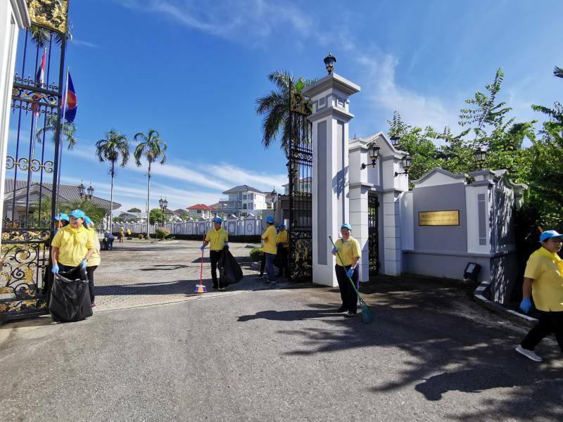 เวลา 08.30 – 10.30 น. ร่วมกิจกรรมจิตอาสาและบำเพ็ญสาธารณะประโยชน์เพื่อถวายเป็นพระราชกุศลฯด้วยการทำความสะอาดและปรับปรุงภูมิทัศน์บริเวณสถานเอกอัครราชทูตฯ และบริเวณโดยรอบ