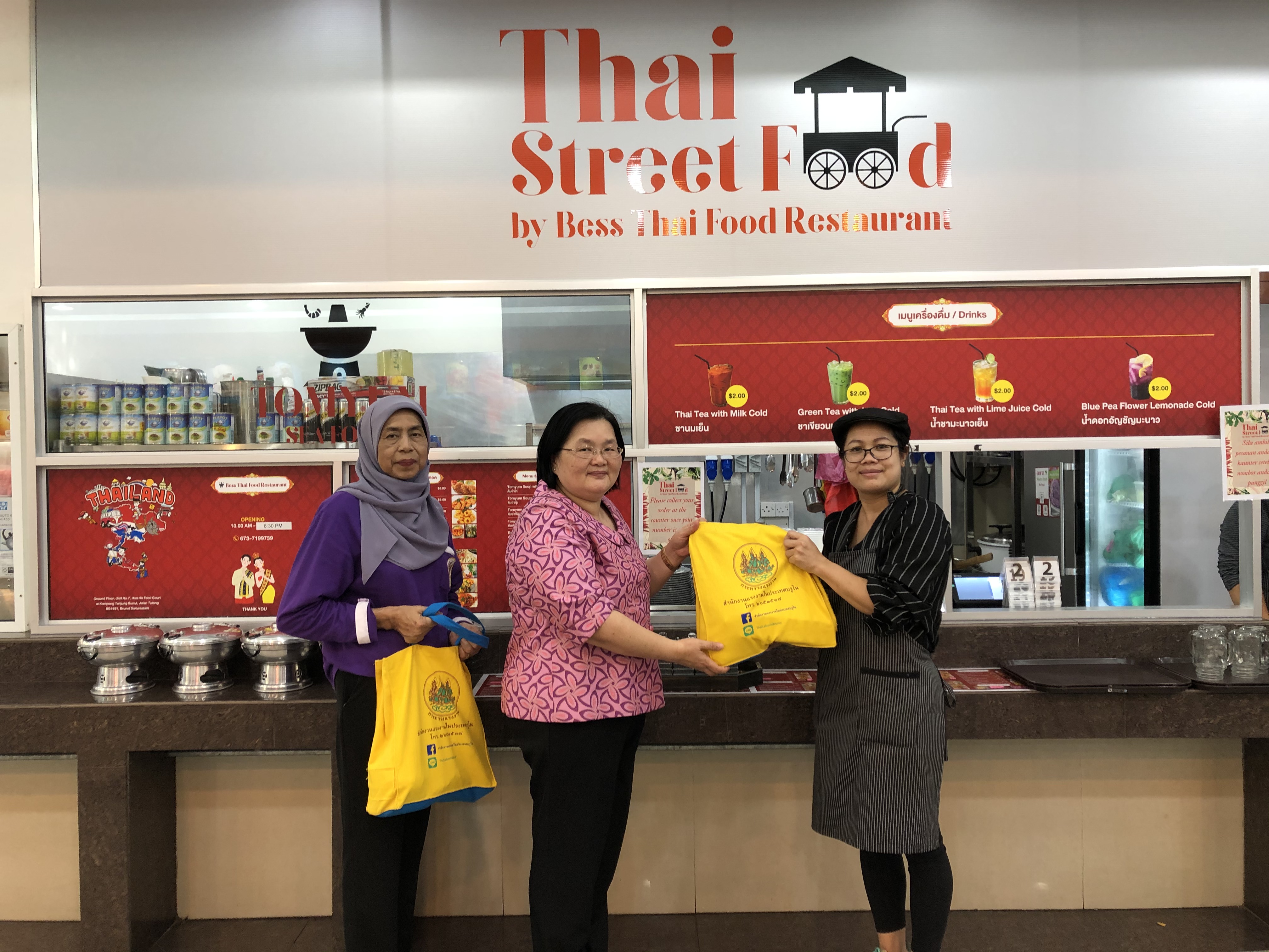 เมื่อวันที่ 13 มกราคม 2564 เวลา 15.30 น. นางนภวรรณ โกละกะ อัครราชทูตที่ปรึกษา (ฝ่ายแรงงาน) พร้อมด้วยเจ้าหน้าที่สำนักงานแรงงานในประเทศบรูไน ได้เดินทางไปยังห้างสรรพสินค้า HuaHo Department Store Tanjung Bunut เพื่อตรวจเยี่ยมแรงงานไทยในร้านอาหาร Thai Street food By Bess Thai Food Restaurant ซึ่งตั้งอยู่ในบริเวณศูนย์อาหารในห้างสรรพสินค้าฯ มีลูกจ้างทั้งหมด 10 คน มีแรงงานไทย 3 คน จากการพูดคุยกับเจ้าของร้านทราบว่าเพิ่งเปิดกิจการในห้างสรรพสินค้านี้มาได้ประมาณหนึ่งเดือนเศษ และมีรายได้ที่ดีสามารถดูแลลูกจ้างทั้งหมดได้เป็นอย่างดี ขณะนี้ได้รับสมัครลูกจ้างไทยในตำแหน่งกุ๊ก เพิ่มอีก 1 คน อาหารไทยที่คนบรูไนนิยมรับประทานที่ขายดีในร้านได้แก่ ต้มยำกุ้ง ทอดมันกุ้ง ทอดมันปลา ไก่ห่อใบเตยและผัดไทย ซึ่งคนบรูไน นิยมทานมากเป็นอันดับต้นๆ สนร.บรูไน จึงได้ขอบคุณเจ้าของสถานประกอบกิจการทั้งสองแห่งที่ให้การดูแลแรงงานไทยทั้งหมดเป็นอย่างดี และได้มอบกระเป๋าผ้าที่ระลึกบรรจุของอุปโภคบริโภคที่จำเป็นให้แก่แรงงานไทย