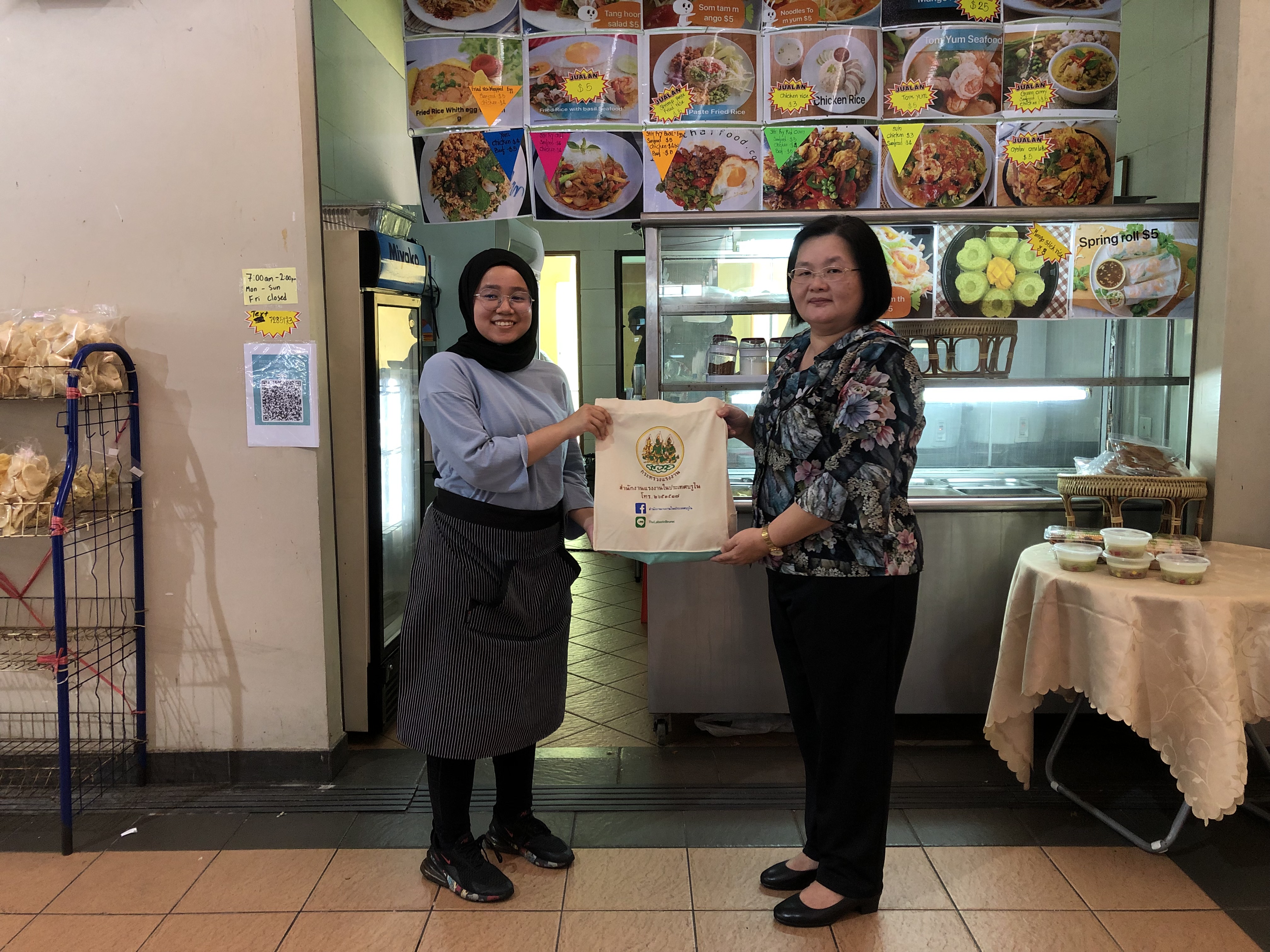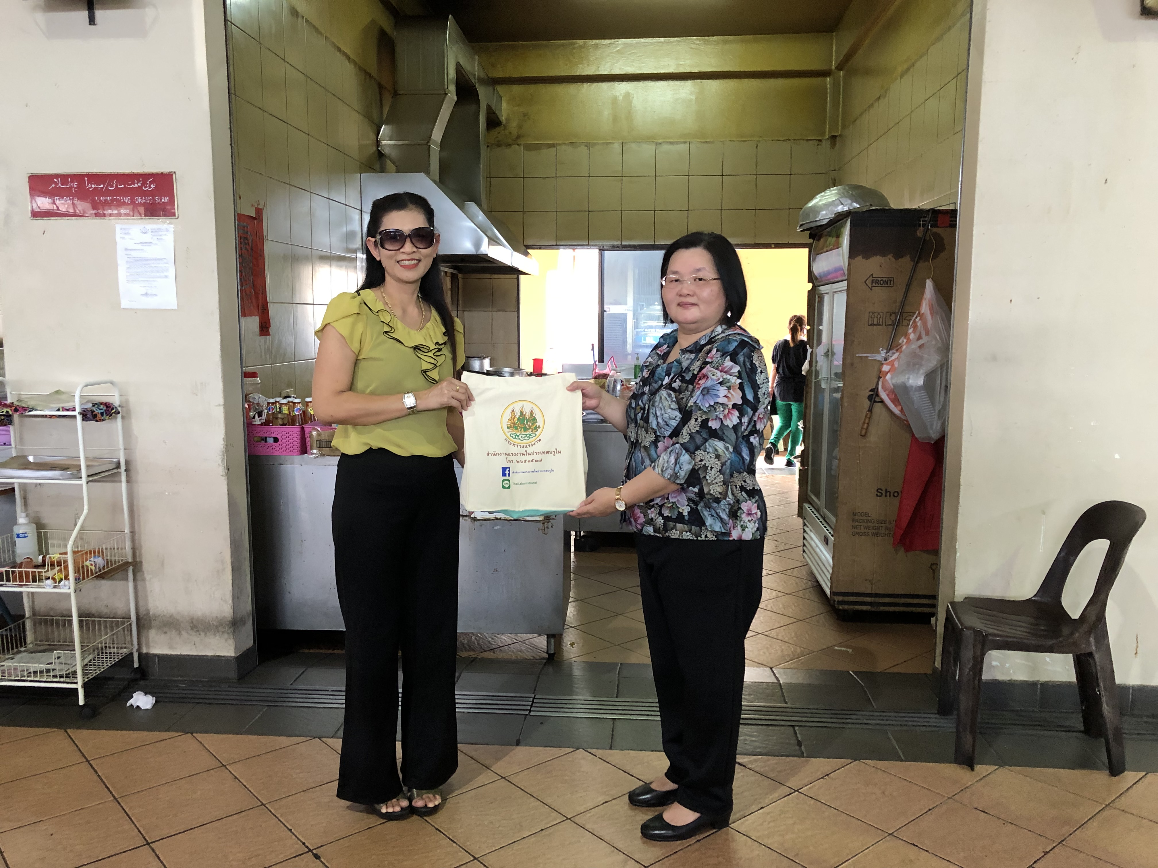 เมื่อวันที่ 16 มิถุนายน 2564 เวลา 09.00 น. นางนภวรรณ โกละกะ อัครราชทูตที่ปรึกษา (ฝ่ายแรงงาน) พร้อมด้วยเจ้าหน้าที่สำนักงานแรงงานในประเทศบรูไน ได้เดินทางไปยังเขต Seria และ Kuala Belait ซึ่งอยู่ห่างจากเมืองหลวงประมาณ 100 กิโลเมตร เพื่อตรวจเยี่ยมลูกจ้าง นายจ้างในกิจการร้านอาหารไทย ได้แก่ ร้าน Restoran Binti Abdullah Dan Anak-Anak มีลูกจ้างทั้งหมด 5 คน แรงงานไทย 2 คน ร้าน Restoran Karim Dan Bibi Fatimah Serta Anak-Anak แรงงานไทย 3 คน ร้าน Syarikat Lee Teck Ming มีลูกจ้างทั้งหมด 5 คน แรงงานไทย 1 คน ร้าน T.R.R (Tantawan) กิจการ รับทำและจัดส่งอาหารไทย มีแรงงานไทย 1 คน จากการสอบถามทราบว่าในกิจการร้านอาหารไทยเหล่านี้ มีเมนูอาหารที่ขายดีเป็นที่นิยมของชาวบรูไน ได้แก่ ต้มยำกุ้ง ข้าวมันไก่ ผัดไทย เป็นต้น ซึ่งลูกจ้างทุกรายมีความพอใจกับรายได้ที่ได้รับ นายจ้างมีผลประกอบการที่ดี ต่อมาได้เดินทางไปยังเขต Lumut เพื่อเยี่ยมผู้ประกอบการคนไทยที่รับทำและจัดส่งอาหารไทย 1 คน และได้เยี่ยมเยียนลูกจ้างบริษัท Halliburton (ESG Sdn Bhd) ผู้ประกอบกิจการ รับเหมางานอุตสาหกรรมน้ำมันและแก๊ส มีลูกจ้างทั้งหมด 200 คน มีแรงงานไทย 10 คน ได้พบปะพูดคุย จำนวน 3 คน ซึ่งลูกจ้างทั้ง 3 คน เพิ่งเดินทางไปทำงานที่ประเทศบรูไน ได้ประมาณ 3 เดือน สนร.บรูไน จึงได้แนะนำการปฏิบัติตัวระหว่างทำงานในประเทศบรูไน กฎระเบียบที่ควรทราบ การปฏิบัติตนให้ห่างไกลจากยาเสพติด พร้อมทั้งได้มอบกระเป๋าผ้าบรรจุเครื่องอุปโภค บริโภคที่จำเป็นเพื่อเป็นกำลังใจให้แก่แรงงานไทยทุกคน