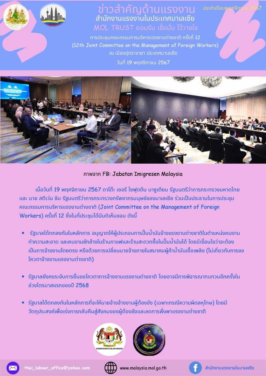 สนร.มาเลเซีย การประชุมคณะกรรมการบริหารแรงงานต่างชาติ ครั้งที่ 12