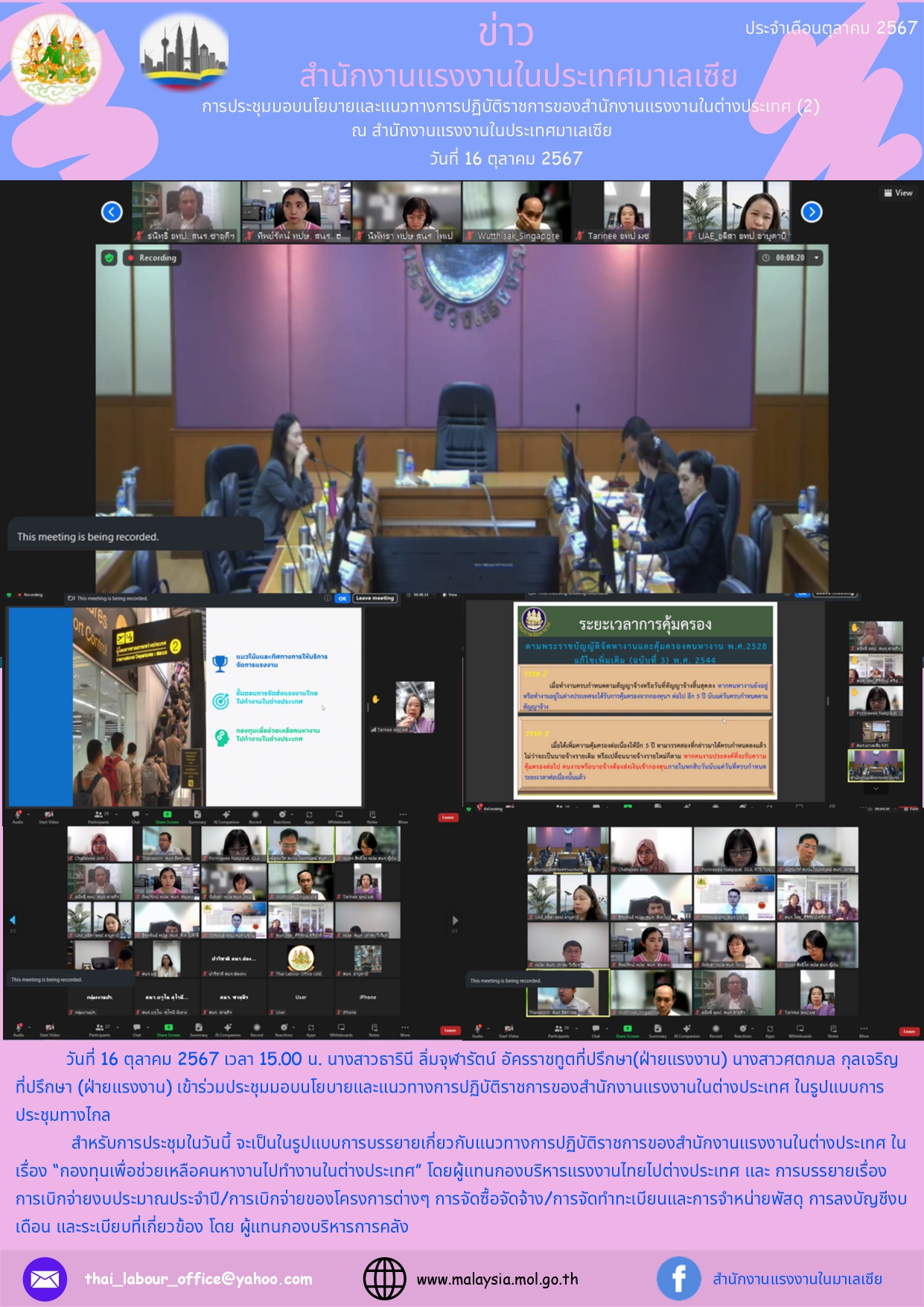 สนร.มาเลเซีย การประชุมมอบนโยบายและแนวทางการปฏิบัติราชการของสำนักงานแรงงานในต่างประเมศ ณ สำนักงานแรงงานในประเทศมาเลเซีย (2) วันที่ 16 ตุลาคม 2567