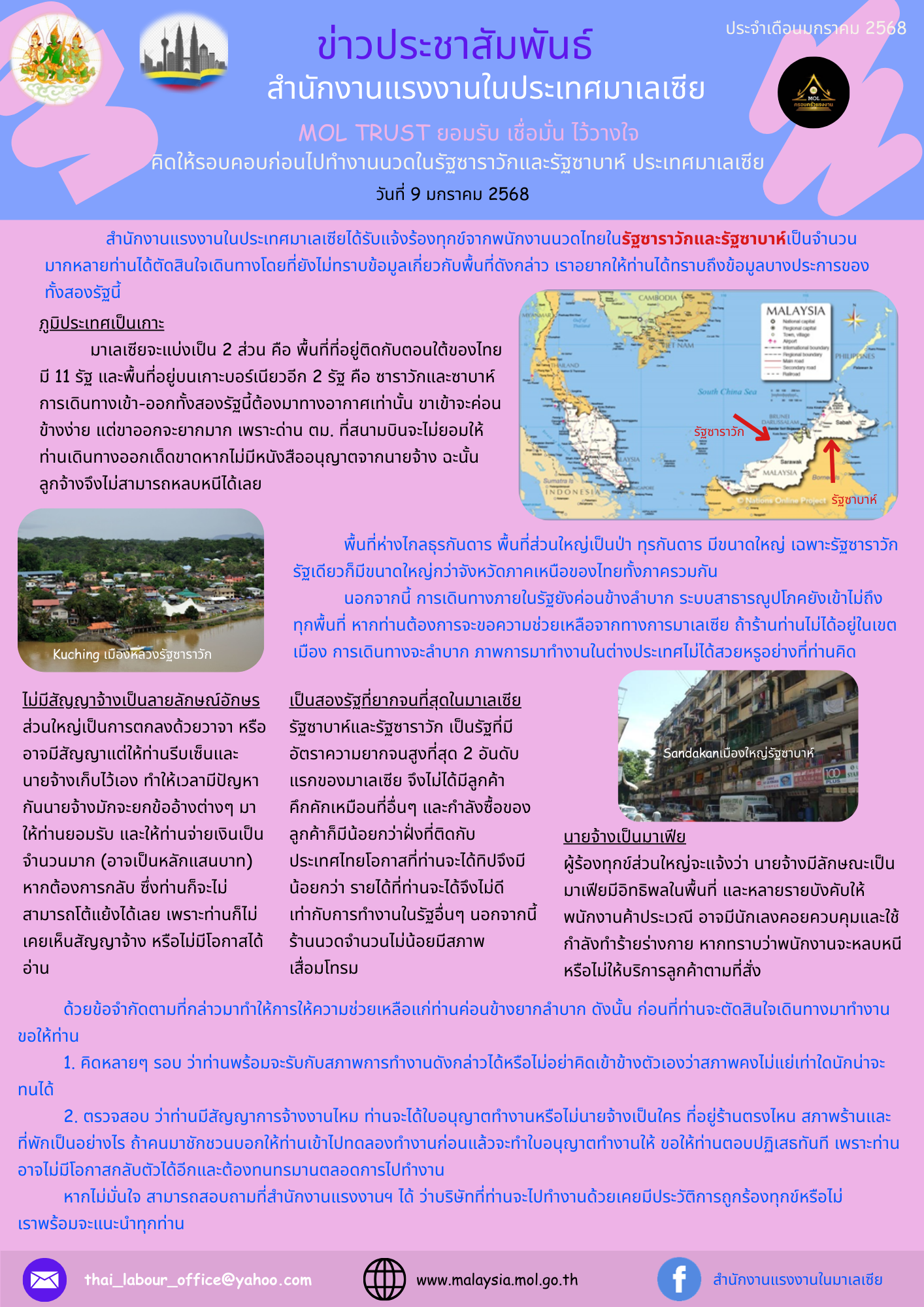 สนร.มาเลเซีย คิดให้รอบคอบก่อนไปทำงานนวดในรัฐซาราวักและรัฐซาบาห์ ประเทศมาเลเซีย