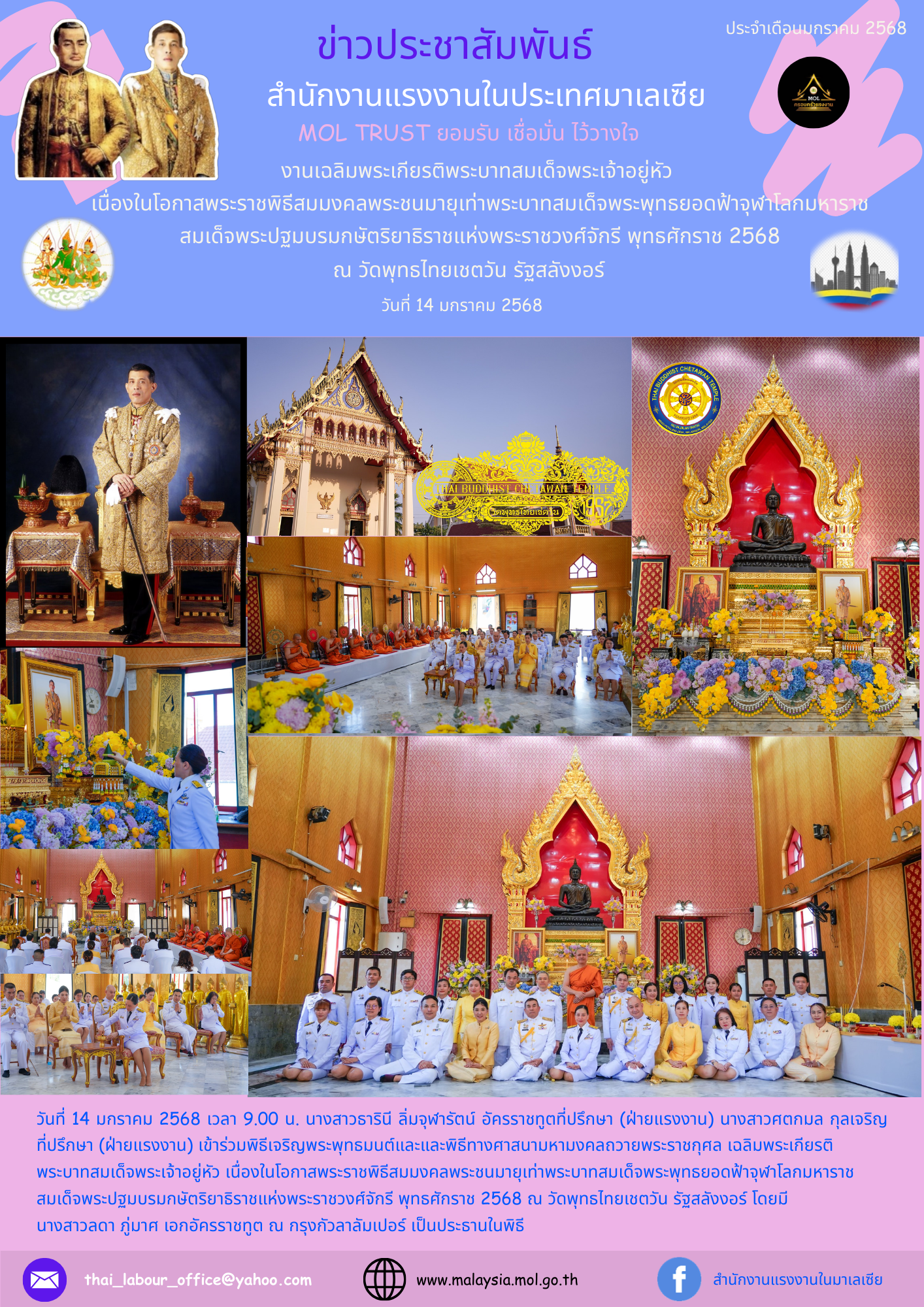 สนร.มาเลเซีย งานเฉลิมพระเกียรติพระบาทสมเด็จพระเจ้าอยู่หัว เนื่องในโอกาสพระราชพิธีสมมงคลพระชนมายุเท่าพระบาทสมเด็จพระพุทธยอดฟ้าจุฬาโลกมหาราช สมเด็จพระปฐมบรมกษัตริยาธิราชแห่งราชวงศ์จักรี พุทธศักราช 2568 ณ วัดพุทธไทยเชตวัน รัฐสลังงอร์