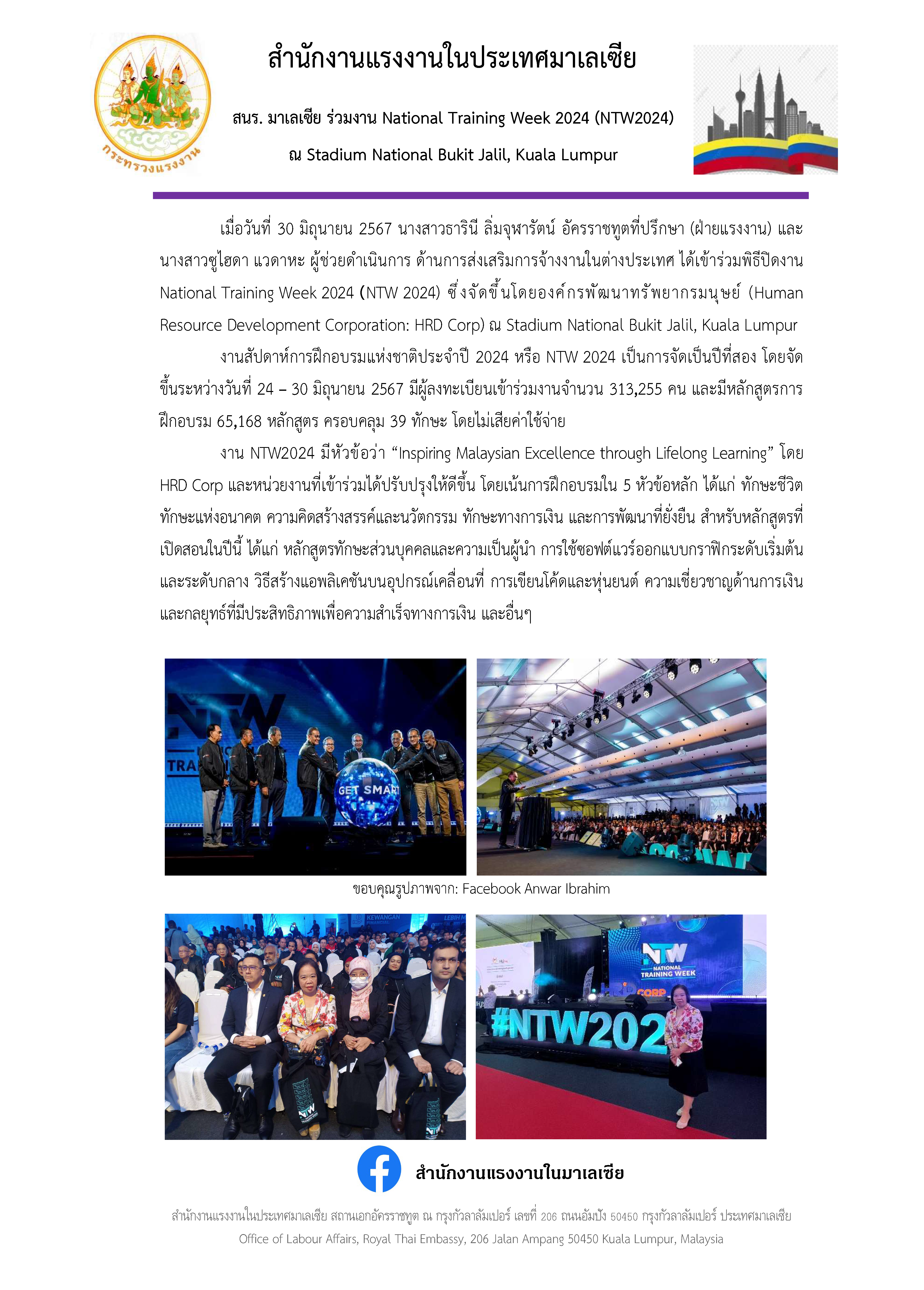 สนร.มาเลเซีย ร่วมงาน National Training Week 2024 (NTW2024) ณ Stadium National Bukit Jalil, Kuala Lumpur