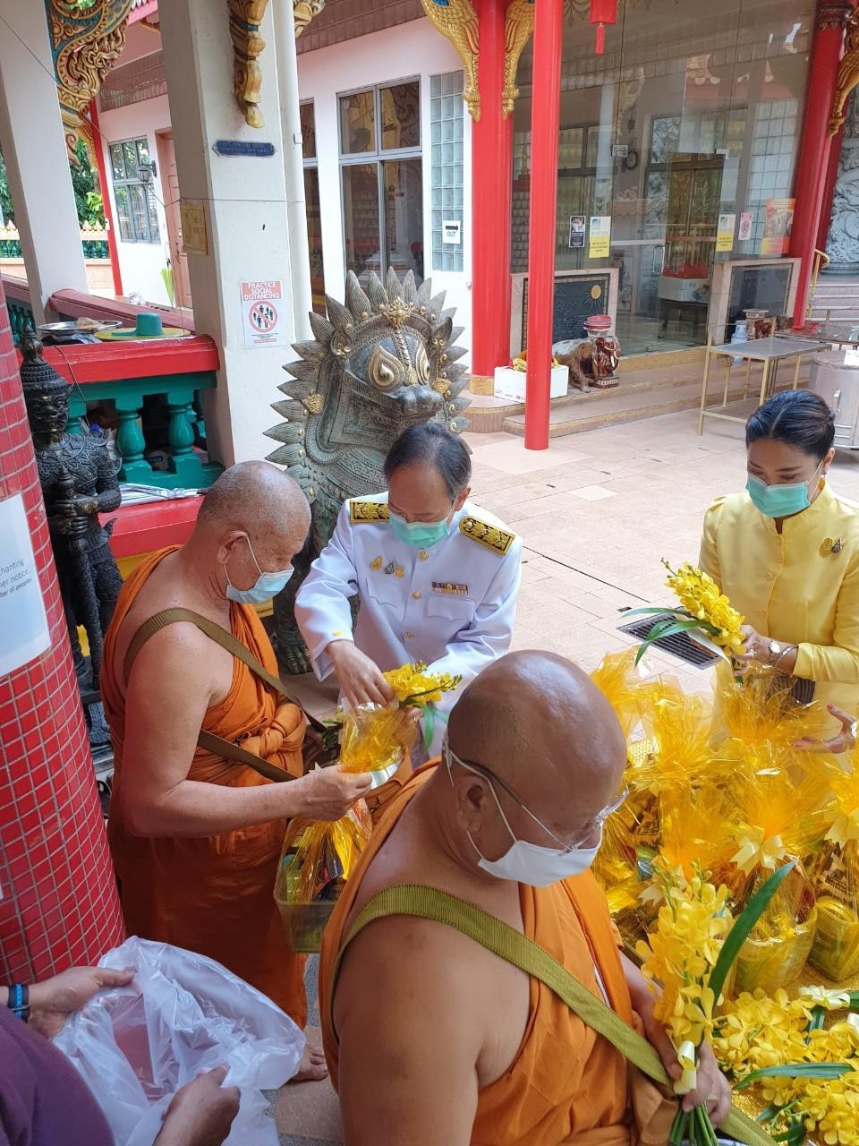 สนร.สิงคโปร์ร่วมกิจกรรมเนื่องในวันคล้ายวันพระบรมราชสมภพพระบาทสมเด็จพระบรมชนกาธิเบศร มหาภูมิพลอดุลยเดชมหาราช บรมนาถบพิตร วันชาติ และวันพ่อแห่งชาติ ๕ ธันวาคม ๒๕๖๓ ณ วัดอานันทเมตยาราม
