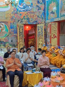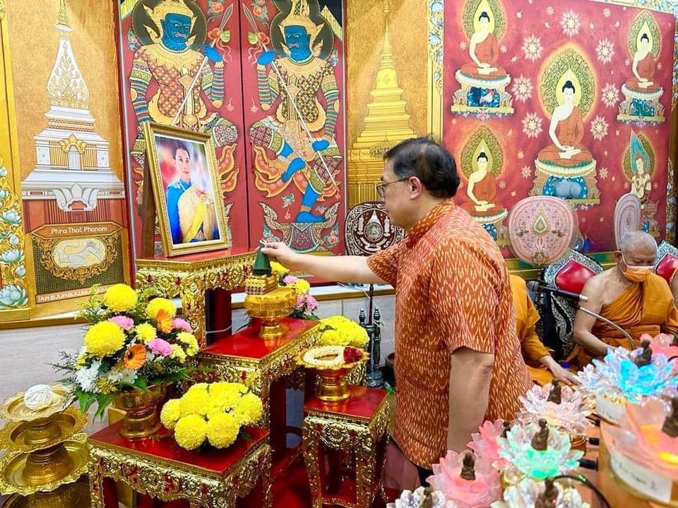 เอกอัครราชทูตฯ เป็นตัวแทนเปิดกรวยเทียนแพเบื้องหน้าพระบรมฉายาลักษณ์พระบาทสมเด็จพระวชิรเกล้าเจ้าอยู่หัว ฯ และพระฉายาลักษณ์สมเด็จพระเจ้าลูกเธอ เจ้าฟ้าพัชรกิติยาภา นเรนทิราเทพยวดี กรมหลวงราชสาริณีสิริพัชร มหาวัชรราชธิดา