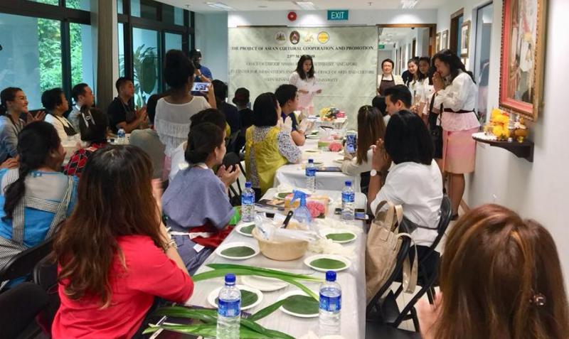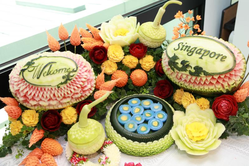 วันที่ 23 พฤษภาคม 2561 นายมานพชัย วงค์ภักดี เอกอัครราชทูต ณ สิงคโปร์ ได้ให้เกียรติมาเป็นประธานในพิธีมอบวุฒิบัตรตามโครงการความร่วมมือระหว่างสำนักงานแรงงานในประเทศสิงคโปร์กับมหาวิทยาลัยราชภัฏสวนสุนันทาเพื่อพัฒนาทักษะฝีมือแรงงานในด้านการแกะสลักผักผลไม้และทำขนมไทยให้กับแรงงานไทยและผู้สนใจ ณ สำนักงานแรงงานในประเทศสิงคโปร์ มีผู้เข้าร่วมพัฒนาทักษะฝีมือ จำนวน 32 คน ซึ่งนอกจากจะมีการแกะสลักผักและผลไม้แล้ว ยังมีการทำขนมไทยประกอบด้วย