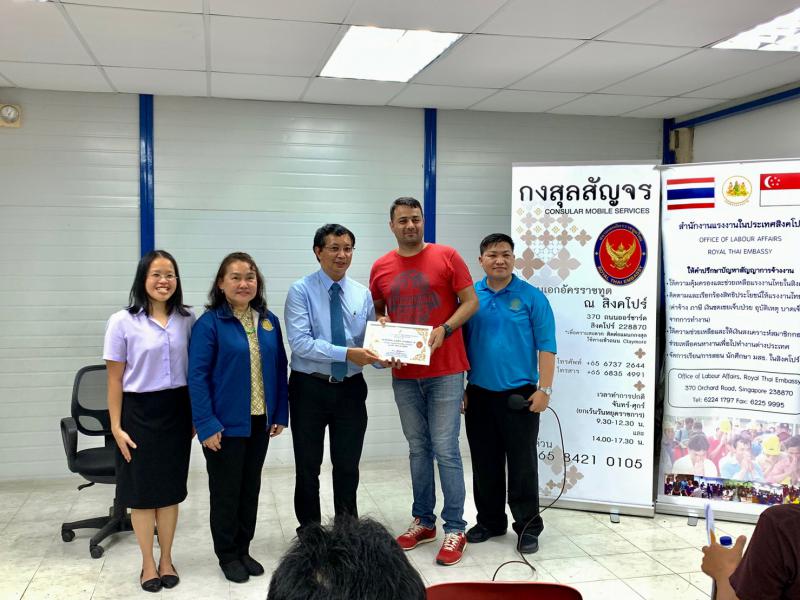 วันพุธที่ 27 มีนาคม 2562 สำนักงานแรงงานในประเทศสิงคโปร์ ได้จัดกิจกรรมเยี่ยมแรงงาน ณ หอพักแรงงาน Woodlands Lodge 2 โดยนายชัยรัตน์ ศิริวัฒน์ อัครราชทูต ณ สิงคโปร์, นางสาวกมลวรรณ บุญยืน อัครราชทูตที่ปรึกษา(ฝ่ายแรงงาน) และเจ้าหน้าที่ สนร.สิงคโปร์ พร้อมด้วยฝ่ายกงสุล สถานเอกอัครราชทูต ณ สิงคโปร์ โดย Mr.Rajan Rajsharma ผู้แทนหอพักฯ ได้ให้การต้อนรับและอำนวยความสะดวก หอพักแห่งนี้เป็นหอพักที่ได้รับการรับรองตามมาตรฐานกฎหมายที่พักสำหรับแรงงานต่างชาติของสิงคโปร์ ในการนี้ สนร.สิงคโปร์ ได้ให้ความรู้เกี่ยวกับข้อควรระวังและบทลงโทษโดยเฉพาะเรื่องยาเสพติดและการดื่มสุรา ความรู้ด้านการดูแลรักษาสุขภาพเบื้องต้น รับทราบข้อมูลสภาพการทำงานและความเป็นอยู่ รวมทั้งได้เผยแพร่ข้อมูลที่เป็นประโยชน์ต่อการทำงานและดำรงชีวิตอยู่ในประเทศสิงคโปร์ และแนะนำช่องทางการติดต่อและบริการที่เกี่ยวข้องของหน่วยงาน เพื่อติดตามคุ้มครองสิทธิแรงงานไทยในประเทศสิงคโปร์ต่อไป