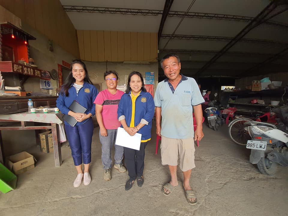 วันที่ 18 พฤศจิกายน 2563 ทีมงานสนร.เกาสง ลงพื้นที่สุ่มตรวจเยี่ยมสถานประกอบการเขตเมืองหยุนหลินและจางฮั่ว จำนวน 3 แห่ง ที่ยื่นขอจ้างแรงงานไทย เพิ่มจำนวน 13 ราย มีแรงงานไทยทำงานในปัจจุบันรวม 37 คน ได้แก่ บริษัท Wire Master Industry Co.,Ltd. ประกอบกิจการผลิตภัณฑ์โลหะ บริษัท Yih Feng Metal Industrial Co.,Ltd. ประกอบกิจการผลิตภัณฑ์โลหะ และบริษัท Linnei Township Farmer’s Association ประกอบกิจการภาคเกษตรกรรม (ปลูกข้าว/ เผือก,เลี้ยงหมู)