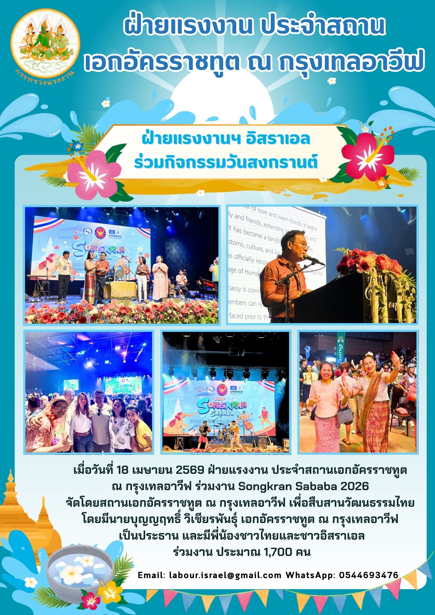 ฝ่ายแรงงาน ประจำสถานเอกอัครราชทูต ณ กรุงเทลอาวีฟ ร่วมงาน Songkran Sababa 2026