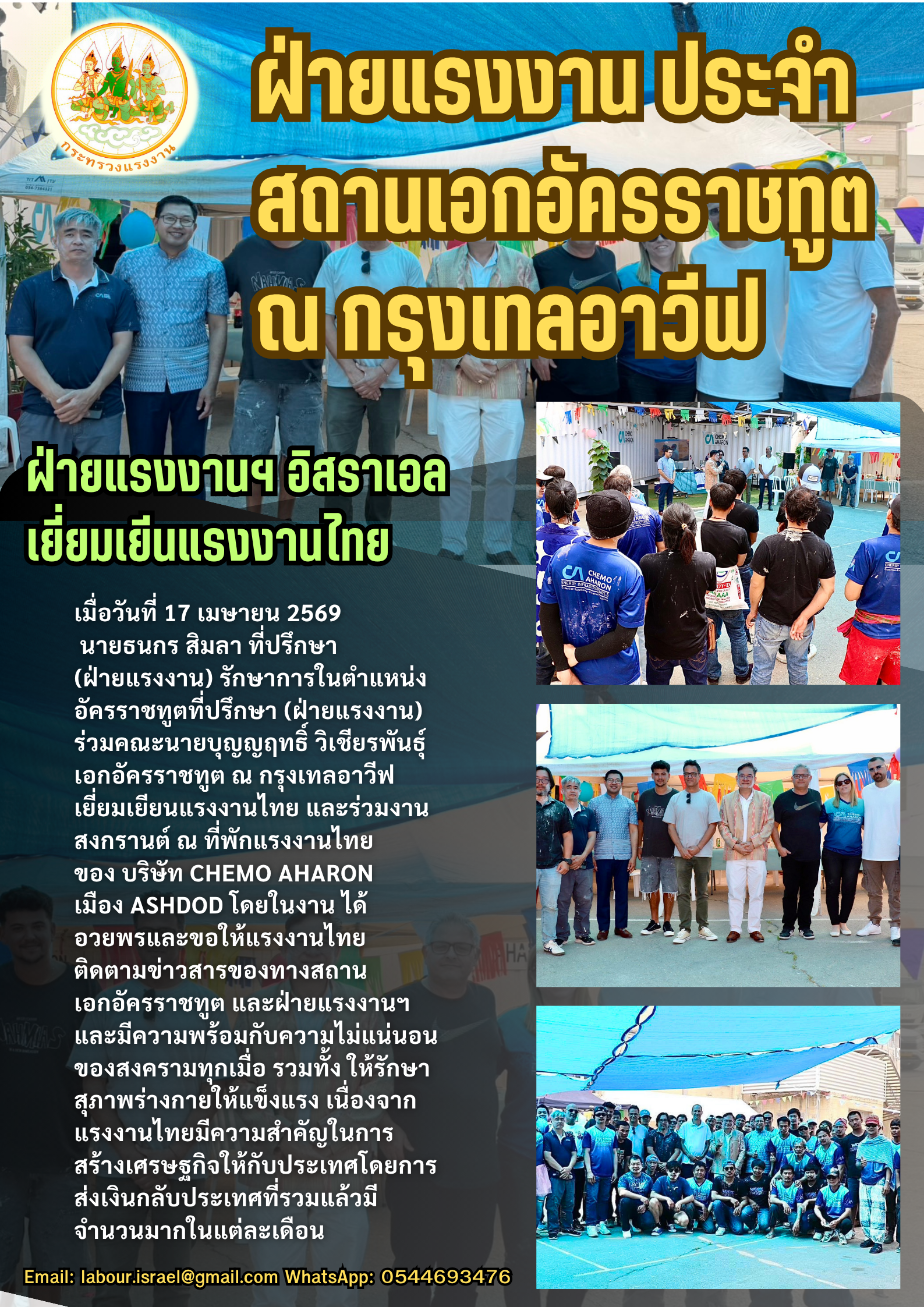ฝ่ายแรงงาน ประจำสถานเอกอัครราชทูต ณ กรุงเทลอาวีฟ เยี่ยมเยียนแรงงานไทยและร่วมกิจกรรมวันสงกรานต์