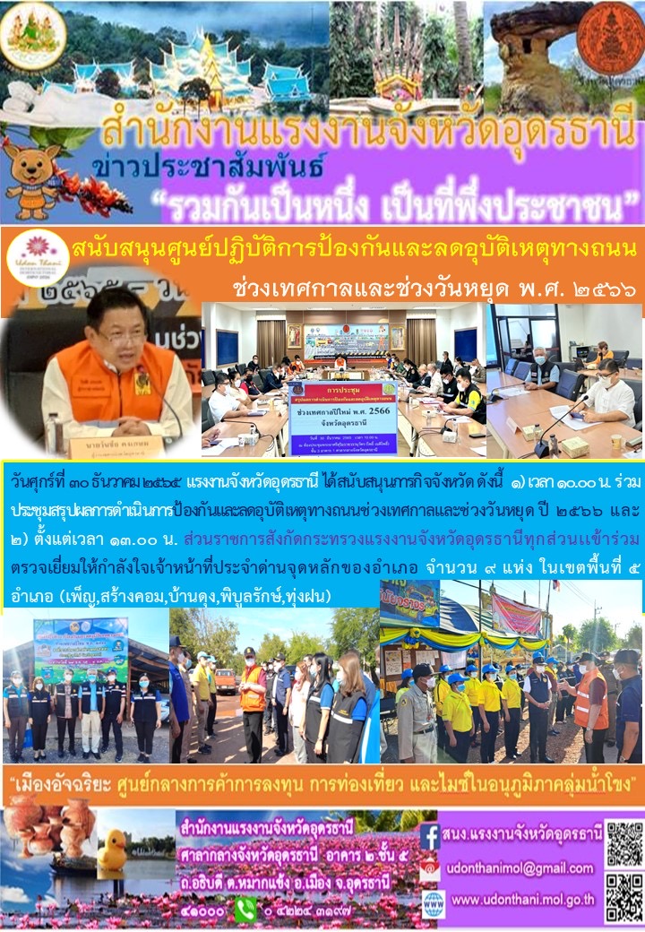 สรจ.อุดรธานี สนับสนุนศูนย์ปฏิบัติการป้องกันและลดอุบัติเหตุทางถนน