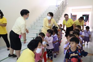 รองปลัดกระทรวงแรงงาน ในฐานะนายกสมาคมแม่บ้านกระทรวงแรงงาน พร้อมคณะกรรมการสมาคมแม่บ้านกระทรวงแรงงาน และผู้แทนจากหน่วยงานภายใต้สังกัดกระทรวงแรงงาน เข้าเยี่ยมชมอาคารสถานที่ของศูนย์เด็กเล็กวิทยาเขตสิรินธรราชวิทยาลัย ในพระราชูปถัมภ์ จังหวัดนครปฐม พร้อมมอบสิ่งของอุปโภค บริโภคแก่ศูนย์เด็กเล็กฯ