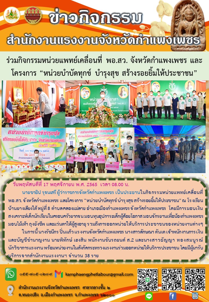 สรจ.กพ.ร่วมกิจกรรมหน่วยแพทย์เคลื่อนที่ พอ.สว.และโครงกา่ร “หน่วยบำบัดทุกข์ บำรุงสุข สร้างรอยยิ้มให้ประชาชน”