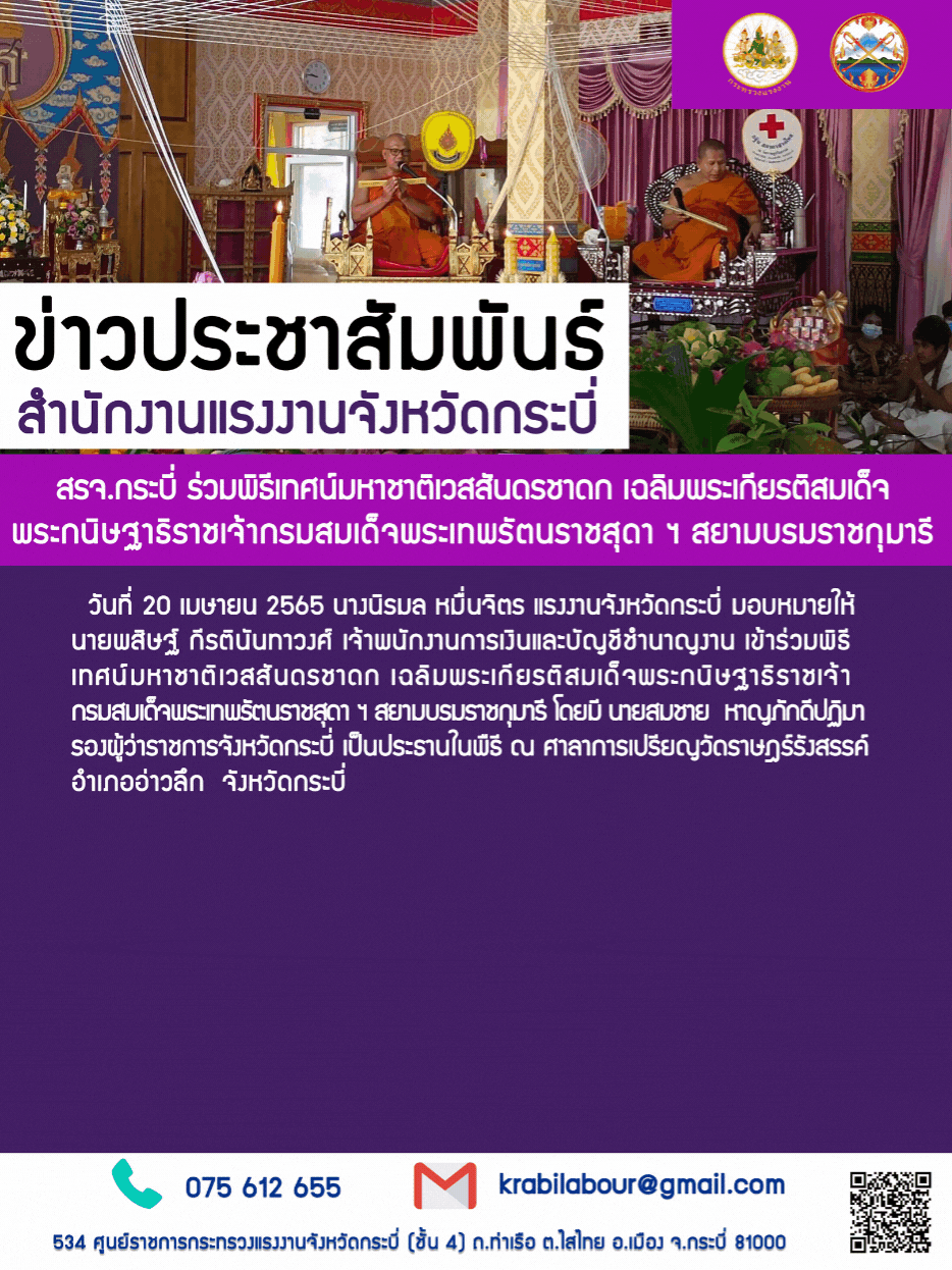 สรจ.กระบี่ ร่วมพิธีเทศน์มหาชาติเวสสันดรชาดก เฉลิมพระเกียรติสมเด็จพระกนิษฐาธิราชเจ้ากรมสมเด็จพระเทพรัตนราชสุดา ฯ สยามบรมราชกุมารี