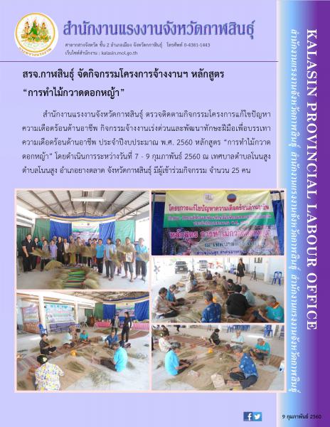 สรจ.กาฬสินธุ์ จัดกิจกรรมโครงการจ้างงานฯ หลักสูตร “การทำไม้กวาดดอกหญ้า”