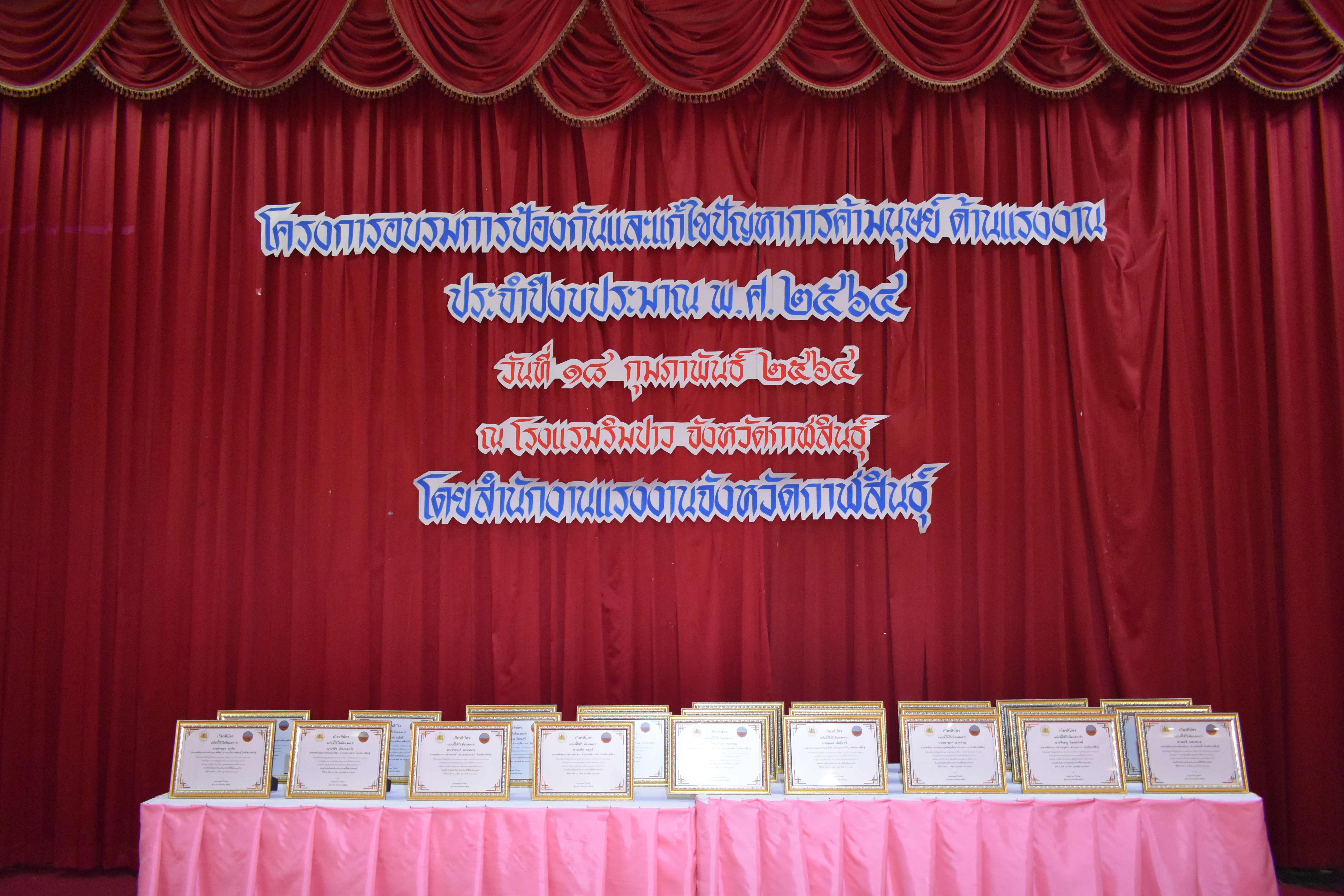 สรจ.กาฬสินธุ์ จัดประชุมอบรมการป้องกันและแก้ไขปัญหาการค้ามนุษย์ด้านแรงงาน ประจำปีงบประมาณ พ.ศ. 2564