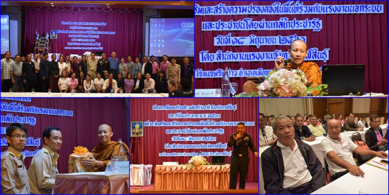 สำนักงานแรงงานจังหวัดกาฬสินธุ์ จัดอบรมกิจกรรม "โครงการสังคมสร้างสุข พลังสร้างชาติจังหวัดกาฬสินธุ์" ประจำปีงบประมาณ พ.ศ. 2561 เมื่อวันที่ 18 มิถุนายน 2561 ณ ห้องทศพร โรงแรมริมปาว เพื่อสนับสนุนให้เกิดความรักความสมัคคี ปรองดองสมานฉันท์ของคนในชาติ ให้ความรู้ในการพัฒนาอาชีพและต่อยอดอาชีพพึ่งพาตนเองได้ มีงานทำ มีรายได้ และคุณภาพชีวิตที่ดี โดยมีอาสาสมัครแรงงาน กลุ่มแรงงานนอกระบบที่ได้ดำเนินการส่งเสริมและพัฒนาอาชีพที่ผ่านมา มีผู้เข้าอบรมกว่า 200 คน