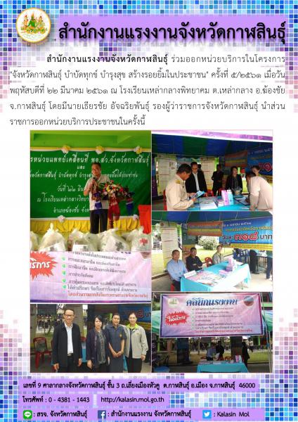 สรจ.กาฬสินธุ์ ออกหน่วยให้บริการประชาชนในโครงการ จังหวัดกาฬสินธุ์ บำบัดทุกข์ บำรุงสุข สร้างรอยยิ้มให้ประชาชน ครั้งที่ 5/2561
