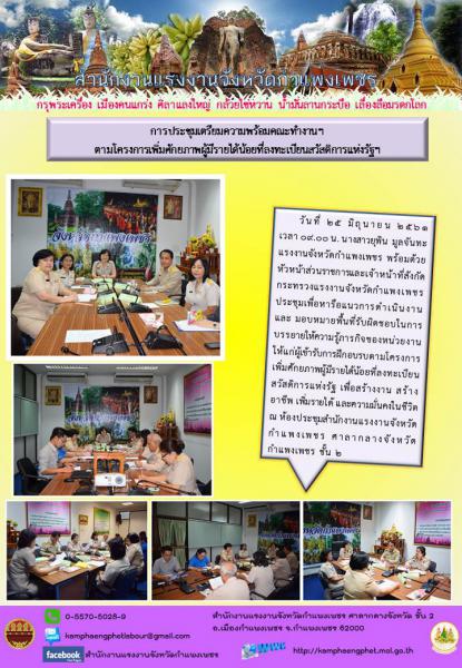 สรจ.กำแพงเพชร จัดการประชุมเตรียมความพร้อมคณะทำงานฯ ตามโครงการเพิ่มศักยภาพผู้มีรายได้น้อยที่ลงทะเบียนสวัสดิการแห่งรัฐฯ