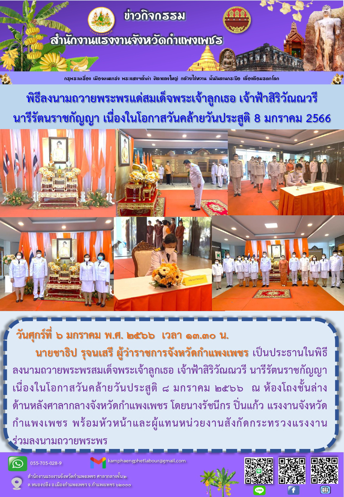 สรจ.กำแพงเพชร ร่วมพิธีลงนามถวายพระพรแด่สมเด็จพระเจ้าลูกเธอเจ้าฟ้าสิริวัณณวรี นารีรัตนราชกัญญา เนื่องในโอกาสวันคล้ายวันประสูติ 8 มกราคม 2566