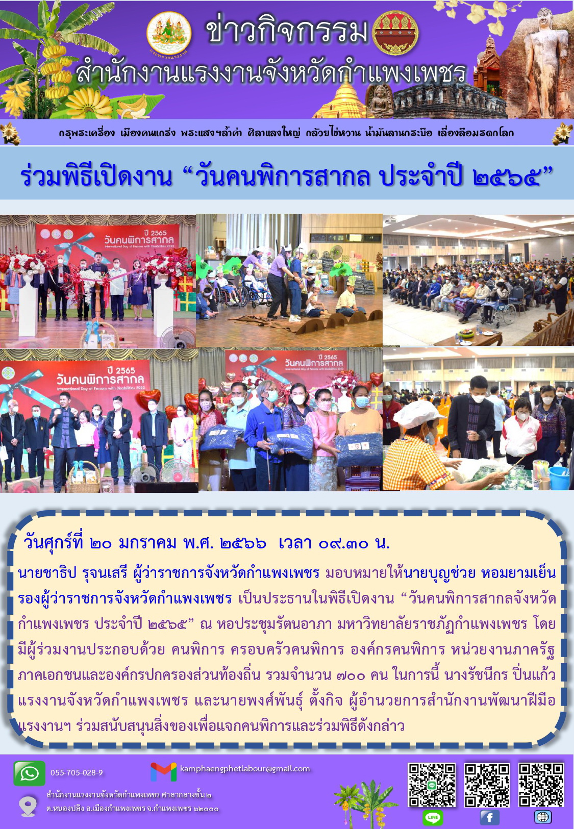 สรจ.กำแพงเพชร ร่วมพิธีเปิดงาน “วันคนพิการสากล ประจำปี 2565”