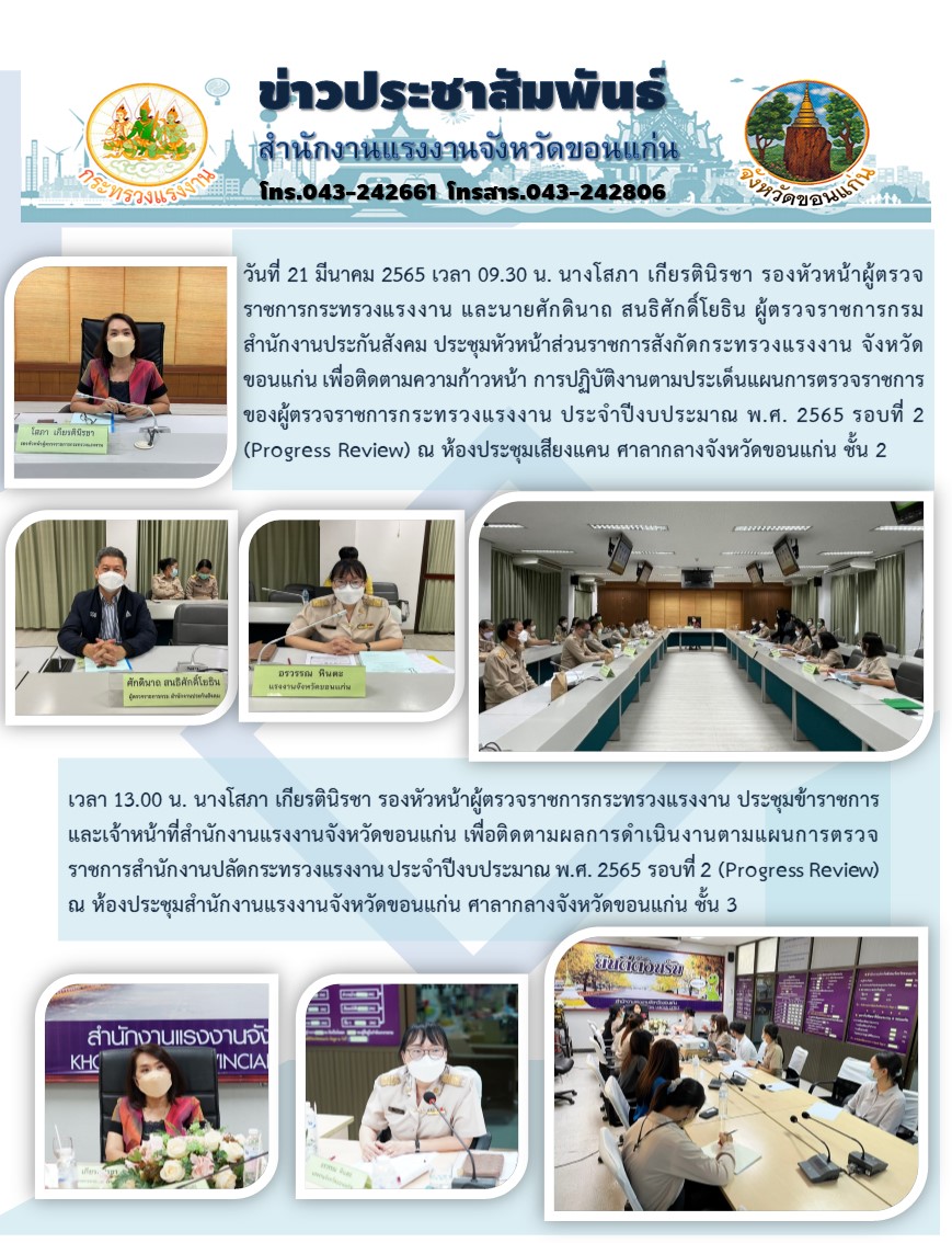 สรจ.ขก ประชุมรับตรวจราชการของผู้ตรวจราชการกระทรวงแรงงาน ประจำปีงบประมาณ พ.ศ. 2565 รอบที่ 2 (Progress Review)