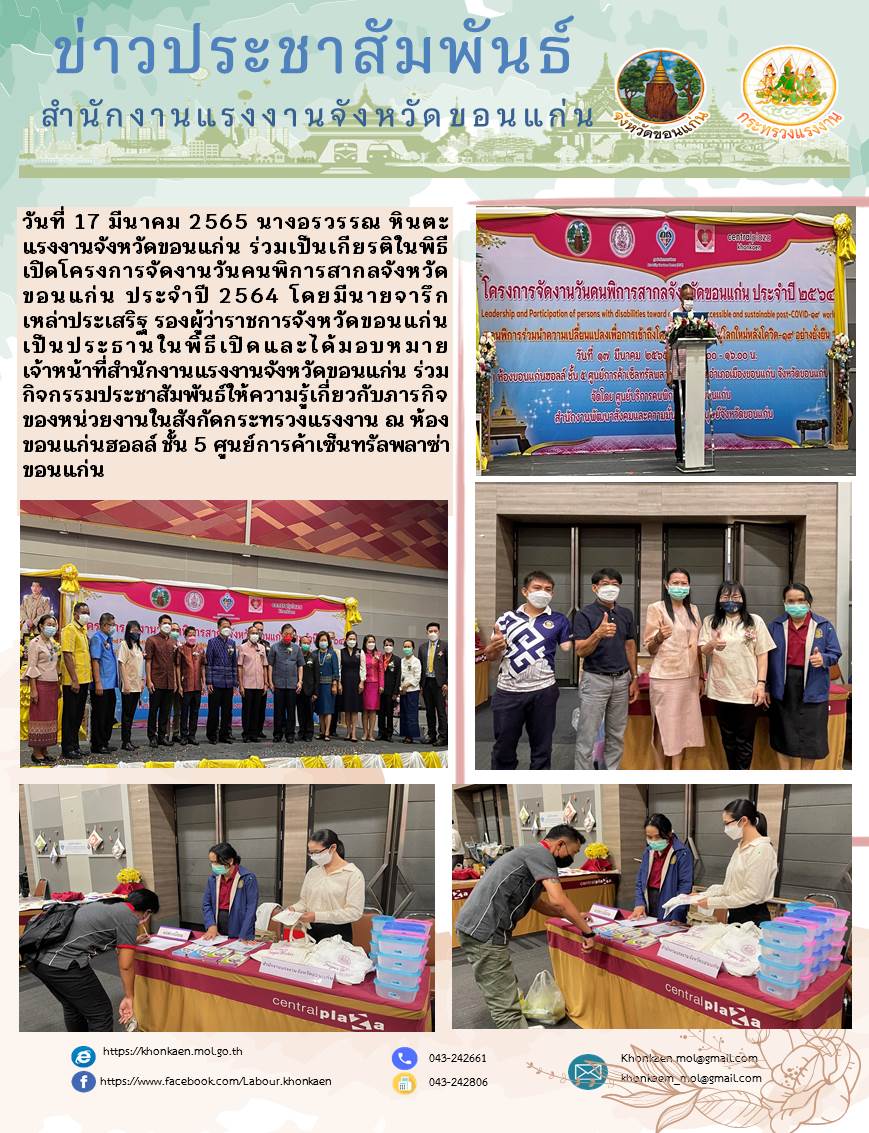 สรจ.ขก ร่วมกิจกรรมงานวันคนพิการสากล จังหวัดขอนแก่น ประจำปี 2564
