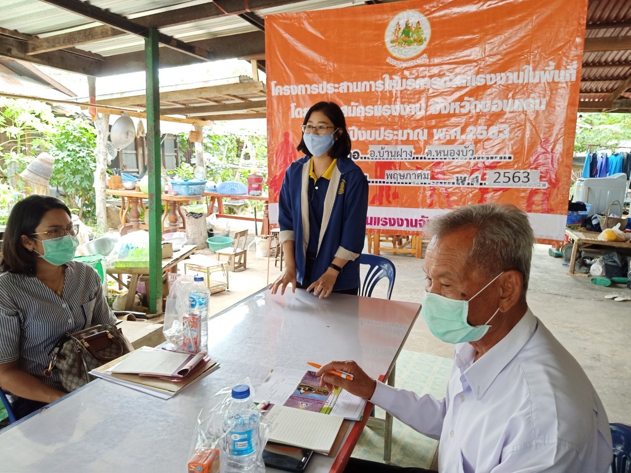 วันที่ 20 พฤษภาคม 2563 สำนักงานแรงงานจังหวัดขอนแก่น ร่วมกับหน่วยงานสังกัดกระทรวงแรงงานจังหวัดขอนแก่นลงพื้นที่ประชุมสัญจรอำเภอบ้านฝาง จังหวัดขอนแก่น จำนวน 7 ตำบล ตามโครงการประสานการให้บริการด้านแรงงานในพื้นที่โดยอาสาสมัครแรงงานฯ เพื่อมอบหมายภารกิจของหน่วยงานและติดตามผลการดำเนินงาน พร้อมรับฟังปัญหาในการปฏิบัติงานของอาสาสมัครแรงงาน โดยมีผู้เข้าร่วมประชุม จำนวน 14 คน