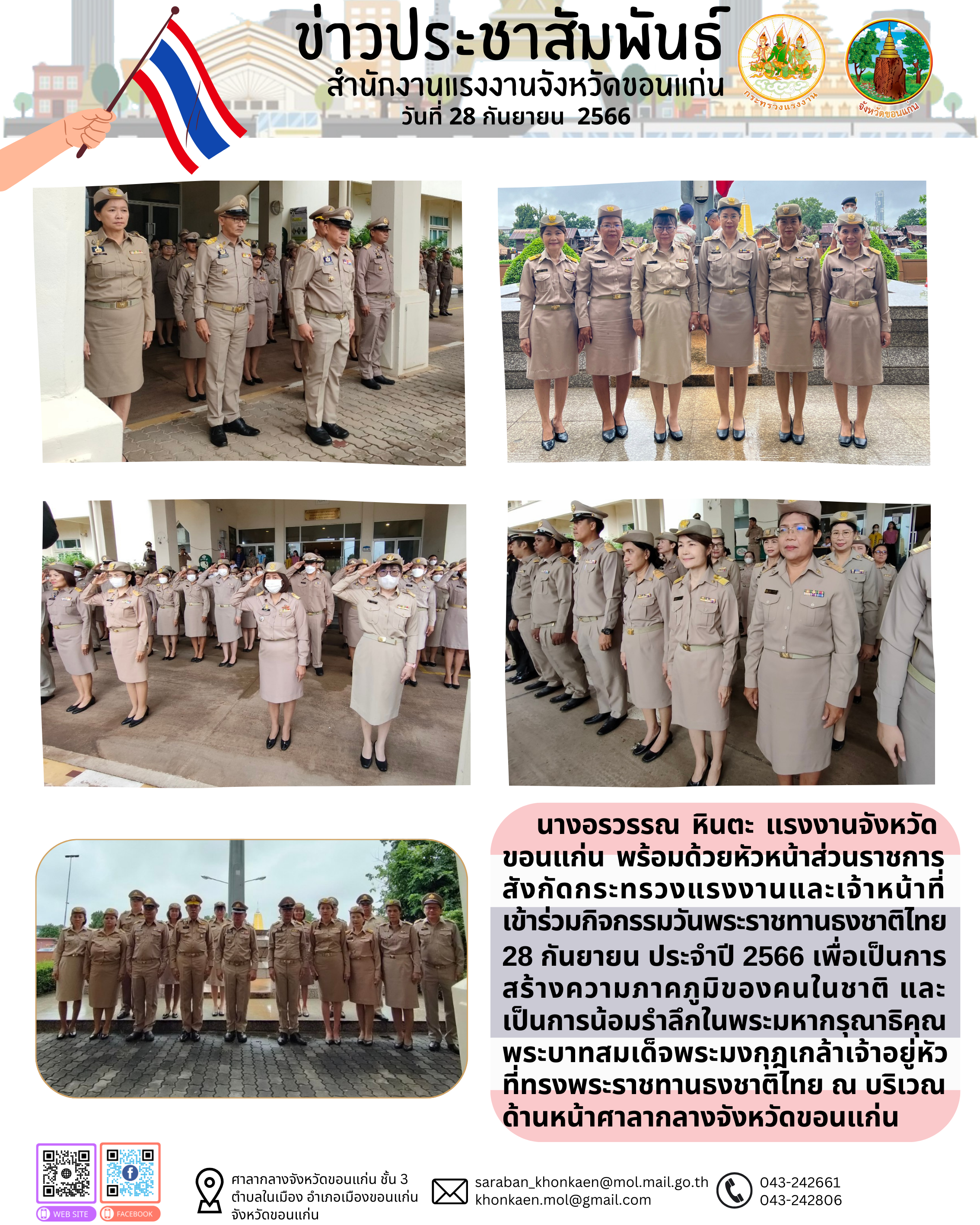 สรจ.ขอนแก่น ร่วมกิจกรรมเนื่องในวันพระราชทานธงชาติไทย 28 กันยายน (Thai National Flag Day) ประจำปี พ.ศ. 2566
