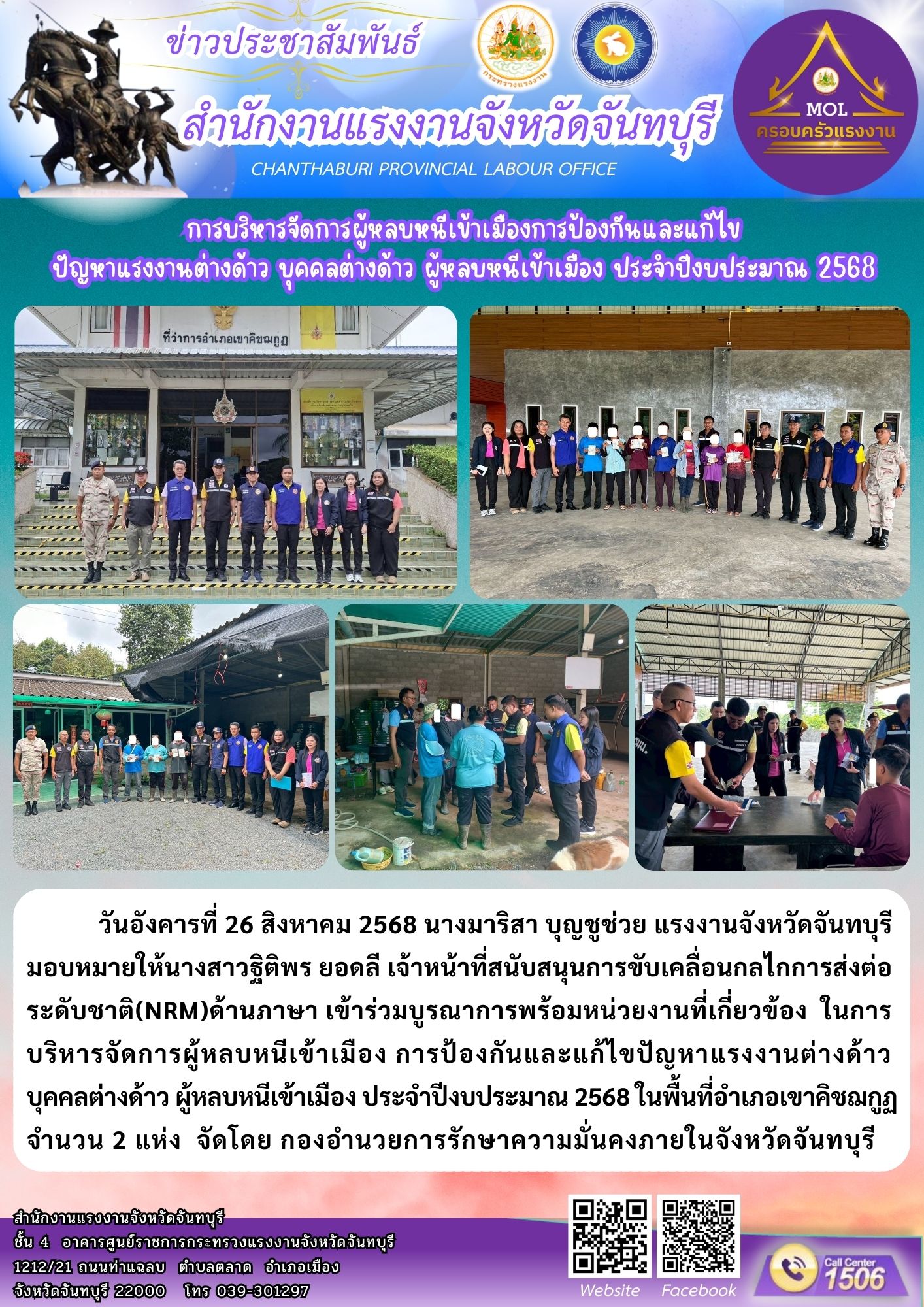 สรจ.จันทบุรี เข้าร่วมบูรณาการพร้อมหน่วยงานที่เกี่ยวข้อง ในการบริหารจัดการผู้หลบหนีเข้าเมือง การป้องกันและแก้ไขปัญหาแรงงานต่างด้าว