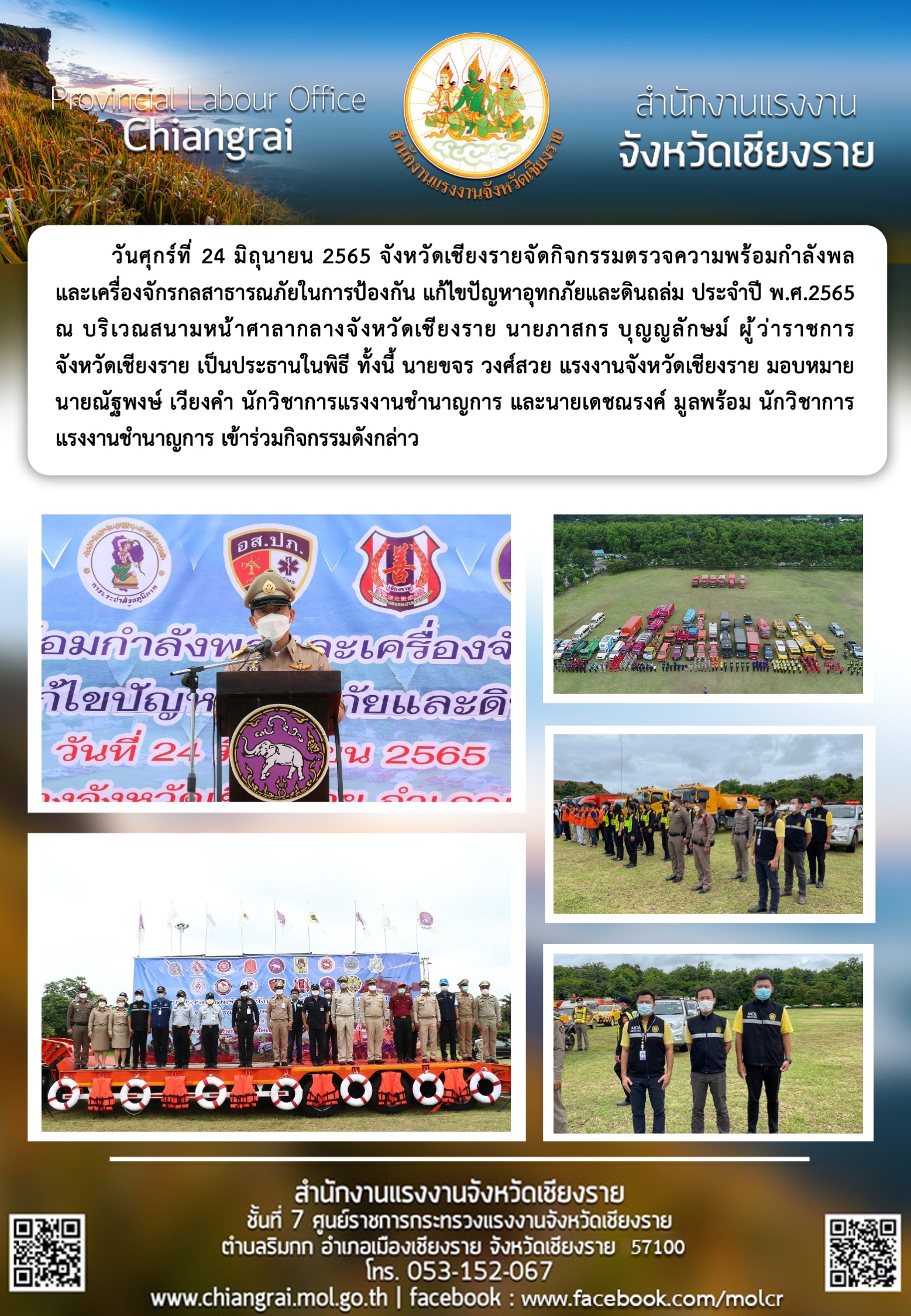 สรจ.ชร เข้าร่วมกิจกรรมตรวจความพร้อมกำลังพลและเครื่องจักรกลสาธารณภัยในการป้องกัน แก้ไขปัญหาอุทกภัยและดินถล่ม ประจำปี พ.ศ.2565