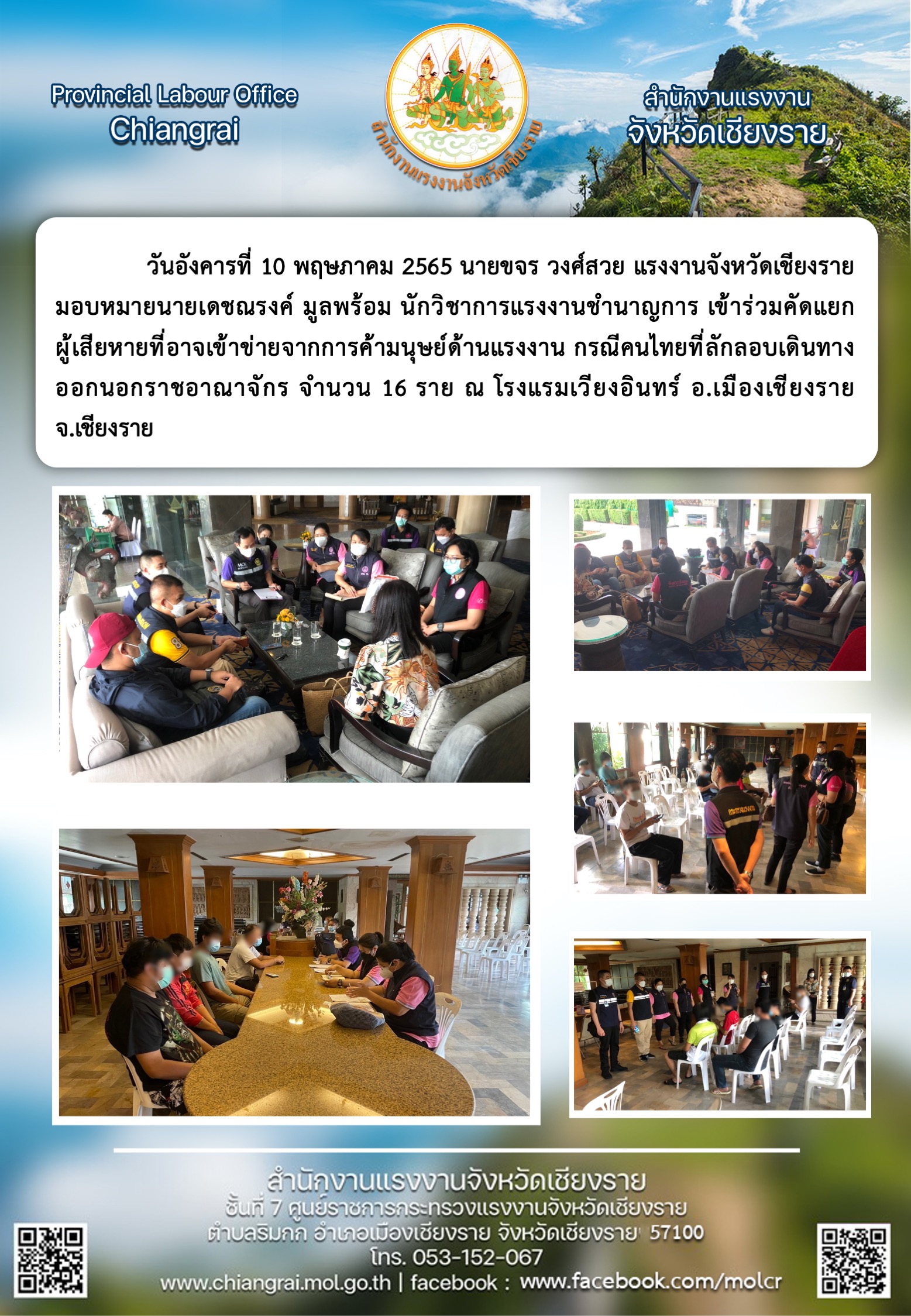 สรจ.ชร เข้าร่วมคัดแยกผู้เสียหายที่อาจเข้าข่ายจากการค้ามนุษย์ด้านแรงงาน กรณีคนไทยลักลอบเดินทางออกนอกราชอาณาจักร