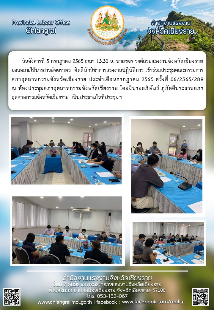 สรจ.ชร เข้าร่วมประชุมคณะกรรมการสภาอุตสาหกรรมจังหวัดเชียงราย ประจำเดือนกรกฎาคม 2565 ครั้งที่ 6