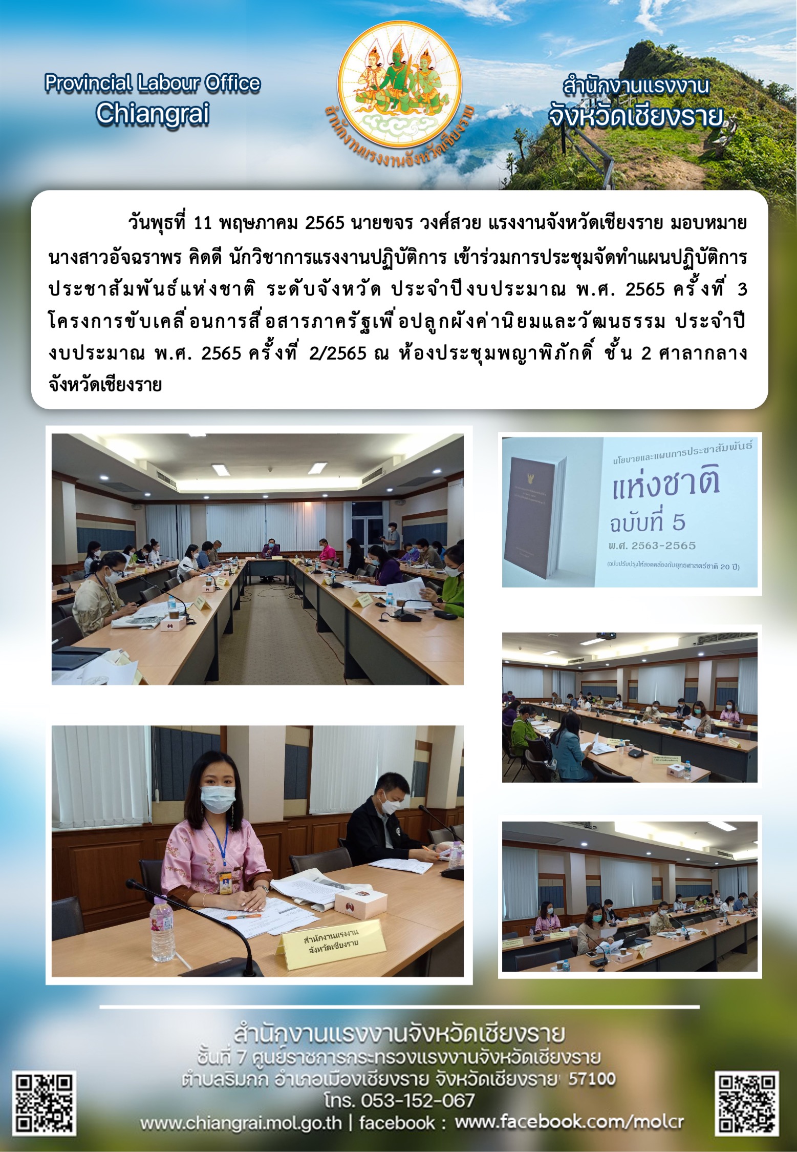 สรจ.ชร เข้าร่วมประชุมจัดทำแผนปฏิบัติการประชาสัมพันธ์แห่งชาติ ระดับจังหวัด ประจำปีงบประมาณ พ.ศ.2565 ครั้งที่ 3