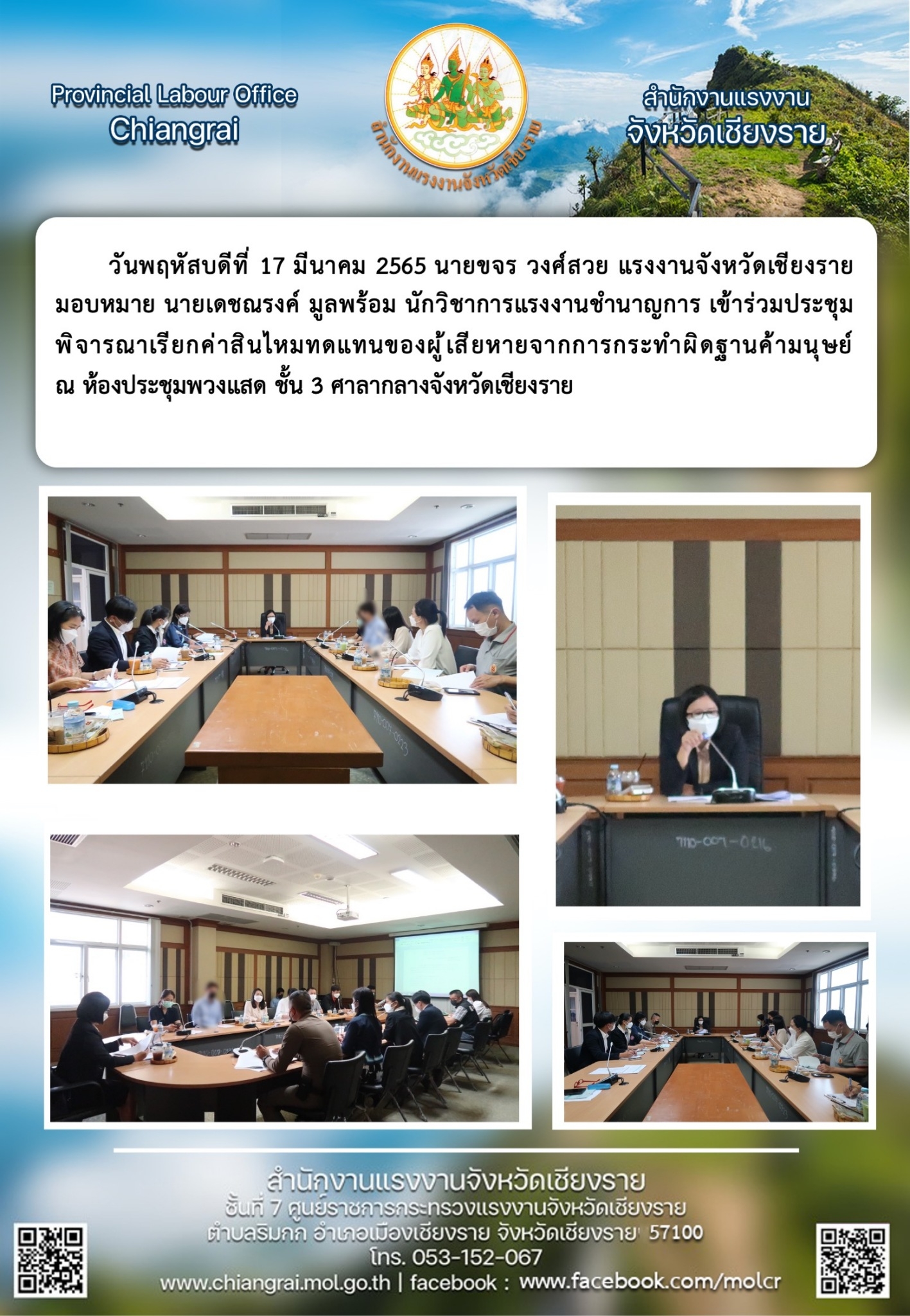 สรจ.ชร เข้าร่วมประชุมพิจารณาเรียกค้าสินไหมทดแทนของผู้เสียหายจากการกระทำผิดฐานค้ามนุษย์