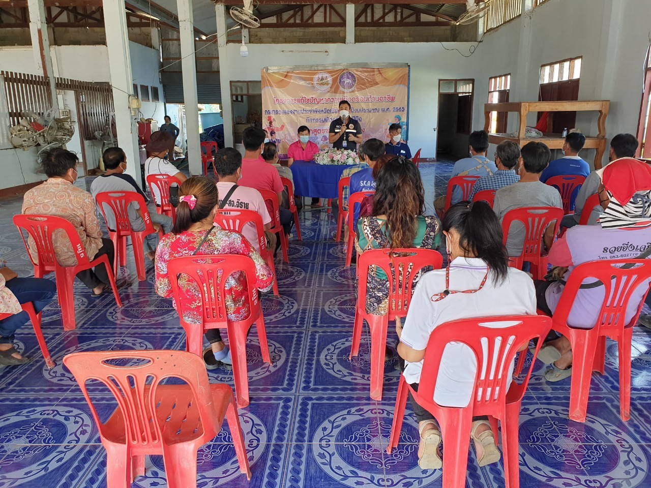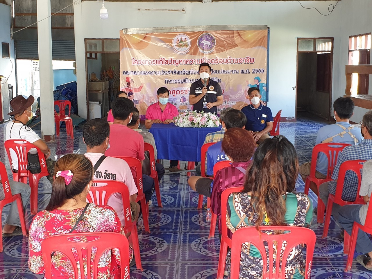 สรจ.ชร. เป็นประธานในการปิดโครงการแก้ไขปัญหาความเดือดร้อนด้านอาชีพ กระทรวงแรงงานจังหวัดเชียงราย ประจำปีงบประมาณ พ.ศ. 2565 กิจกรรมพัฒนาทักษะฝีมือ หลักสูตรช่างปูกระเบื้อง จำนวน 30 ชั่วโมง จำนวน 20 คน