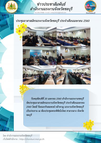 สรจ.ชลบุรี จัดประชุมอาสาสมัครแรงงานชลบุรี ประจำเดือนเมษายน 2560