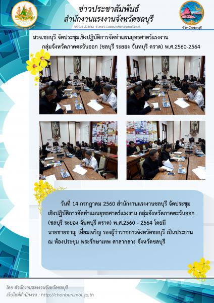 สรจ.ชลบุรี จัดประชุมเชิงปฏิบัติการจัดทำแผนยุทธศาตร์แรงงาน กลุ่มจังหวัดภาคตะวันออก (ชลบุรี ระยอง จันทบุรี ตราด) พ.ศ.2560-2564