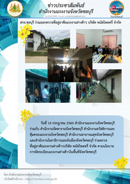 สรจ.ชลบุรี ร่วมตรวจที่อยู่อาศัยแรงงานต่างด้าวบริษัท พนัสโพลทรี่ จำกัด