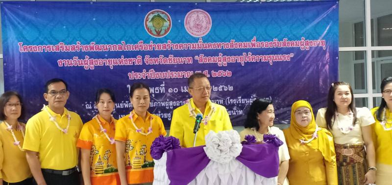วันที่ 10 เมษายน 2562 เวลา 09.00 น. นายสำราญ นันทนีย์ รองผู้ว่าราชการจังหวัดชัยนาท เป็นประธานเปิดโครงการเสริมสร้างพัฒนากลไกเครือข่ายสร้างความมั่นคงทางสังคมเพื่อรองรับสังคมผู้สูงอายุ (งานวันผู้สูงอายุแห่งชาติจังหวัดชัยนาท อรรถบท “สังคมผู้สูงอายุไร้ความรุนแรง”) ประจำปี 2562 ณ อาคารศูนย์พัฒนาศักยภาพผู้สูงอายุจังหวัดชัยนาท (โรงเรียนผู้สูงอายุตำบลห้วยงู) โดยนายขจร วงศ์สวย แรงงานจังหวัดชัยนาท ได้ร่วมเสวนาในหัวข้อ การทำงานหลังวัยเกษียณ/การจ้างงานผู้สูงอายุ