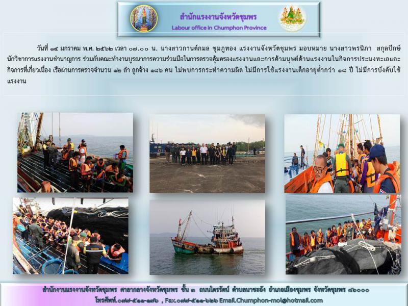 สรจ.ชุมพร ร่วมกับคณะทำงานบูรณาการความร่วมมือการตรวจคุ้มครองและการค้ามนุษย์ด้านแรงงานในกิจการประมงทะเลและกิจการที่เกี่ยวเนื่อง