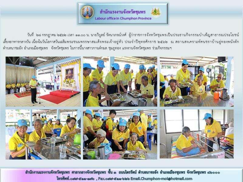 สรจ.ชุมพร ร่วมกิจกรรมบำเพ็ญสาธารณประโยชน์เลี้ยงอาหารกลางวัน เนื่องในวันโอกาสวันเฉลิมพระชนมพรรษาสมเด็จพระเจ้าอยู่หัว ประจำปีพุทธศักราช 2562