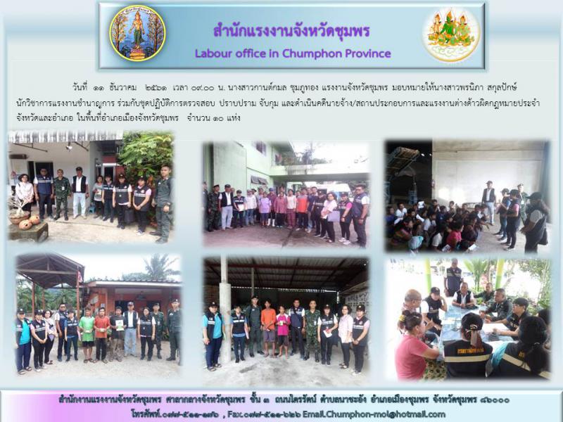 สรจ.ชุมพร ร่วมชุดปฏิบัติการตรวจสอบ ปราบปราม จับกุมและดำเนินคดีนายจ้าง/สถานประกอบการและแรงงานต่างด้าวผิดกฎหมาย