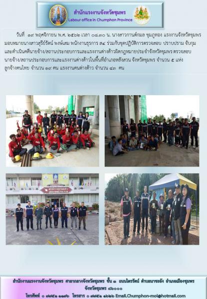 สรจ.ชุมพร ร่วมชุดปฏิบัติการตรวจสอบ ปราบปราม จับกุมและดำเนินคดีนายจ้าง/สถานประกอบการและแรงงานต่างด้าวผิดกฎหมาย