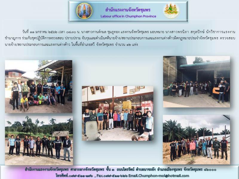 สรจ.ชุมพร ร่วมชุดปฏิบัติการตรวจสอบ ปราบปราม จับกุมและดำเนินคดีนายจ้าง/สถานประกอบการและแรงงานต่างด้าวผิดกฎหมาย