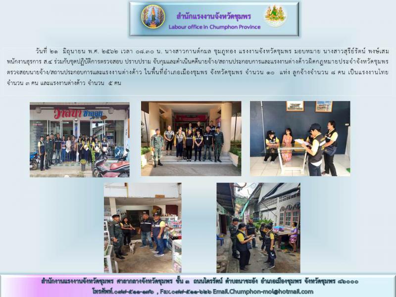 สรจ.ชุมพร ร่วมชุดปฏิบัติการตรวจสอบ ปราบปราม จับกุมและดำเนินคดีนายจ้าง/สถานประกอบการและแรงงานต่างด้าวผิดกฎหมาย