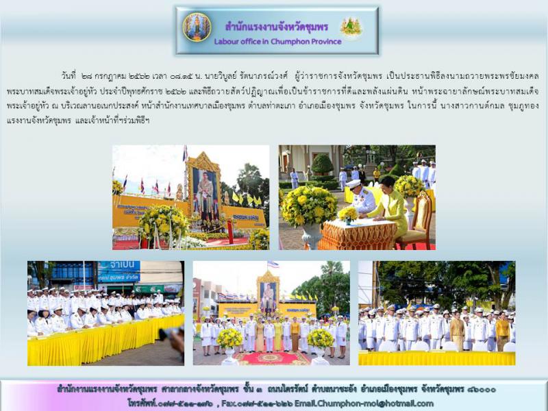 สรจ.ชุมพร ร่วมนพิธีลงนามถวายพระพรชัยมงคลพระบาทสมเด็จพระเจ้าอยู่หัว ประจำปีพุทธศักราช 2562 และพิธีถวายสัตว์ปฏิญาณเพื่อเป็นข้าราชการที่ดีและพลังแผ่นดิน หน้าพระฉายาลักษณ์พระบาทสมเด็จ พระเจ้าอยู่หัว
